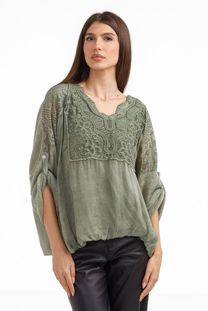 Bluza dama eleganta cu detalii delicate și design modern, ideală pentru un look rafinat. Croiul lejer pune în valoare silueta, iar detaliile fine adaugă un plus de feminitate și stil.