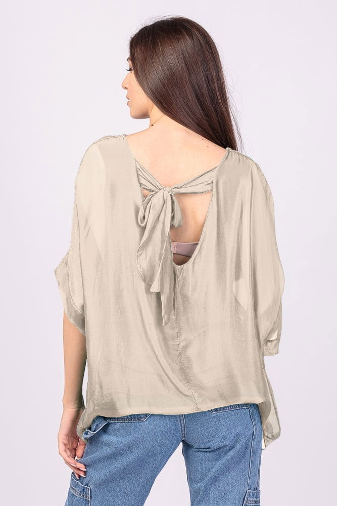 Shopika Bluza din matase si vascoza bej, cu funda pe spate
