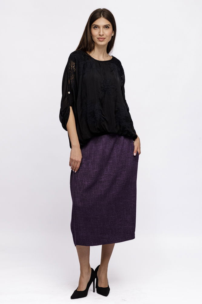 Shopika Bluza din matase si vascoza brodata, cu dantela pe spate, neagra
