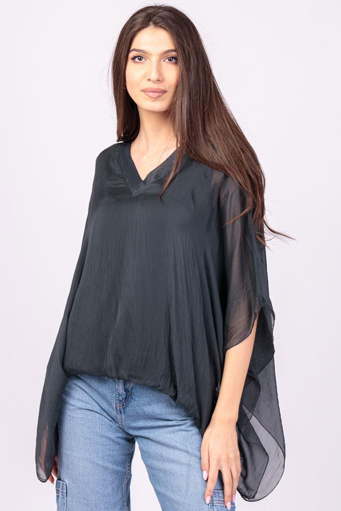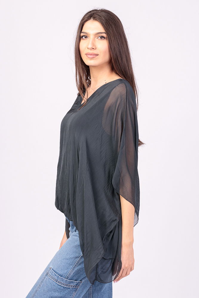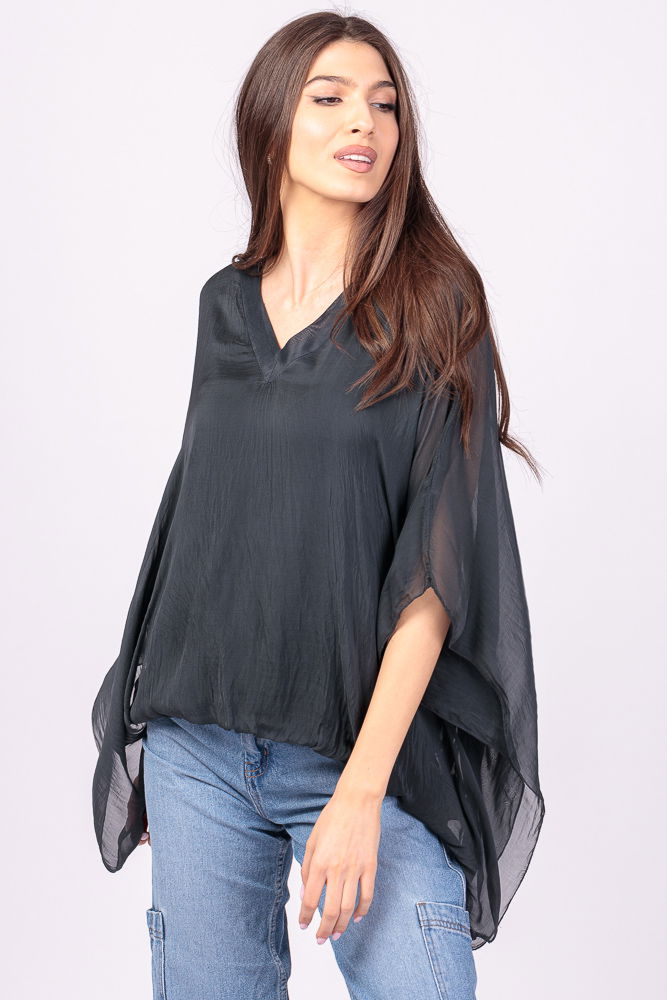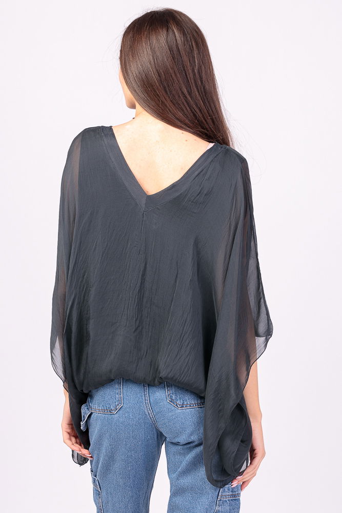 Shopika Bluza din matase si vascoza gri, cu decolteu in V in fata si pe spate