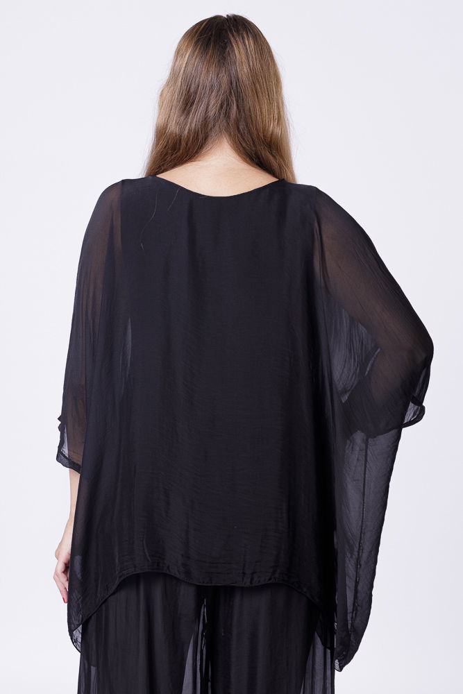 Shopika Bluza din matase si vascoza in colturi, neagra