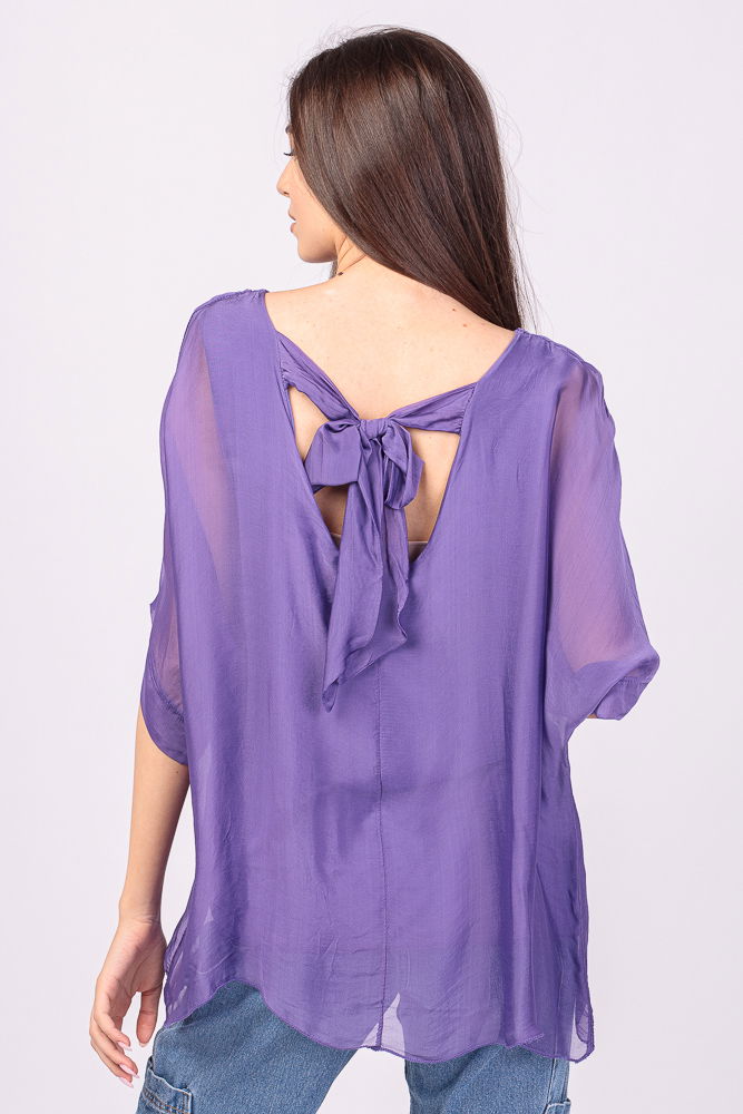 Shopika Bluza din matase si vascoza mov, cu funda pe spate
