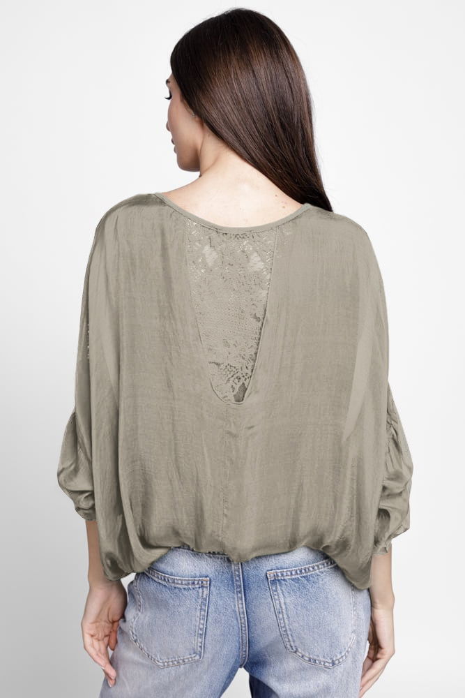 Shopika Bluza din matase si vascoza platca brodata, cu paiete fine si cu dantela pe spate, bej inchis