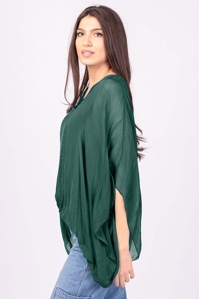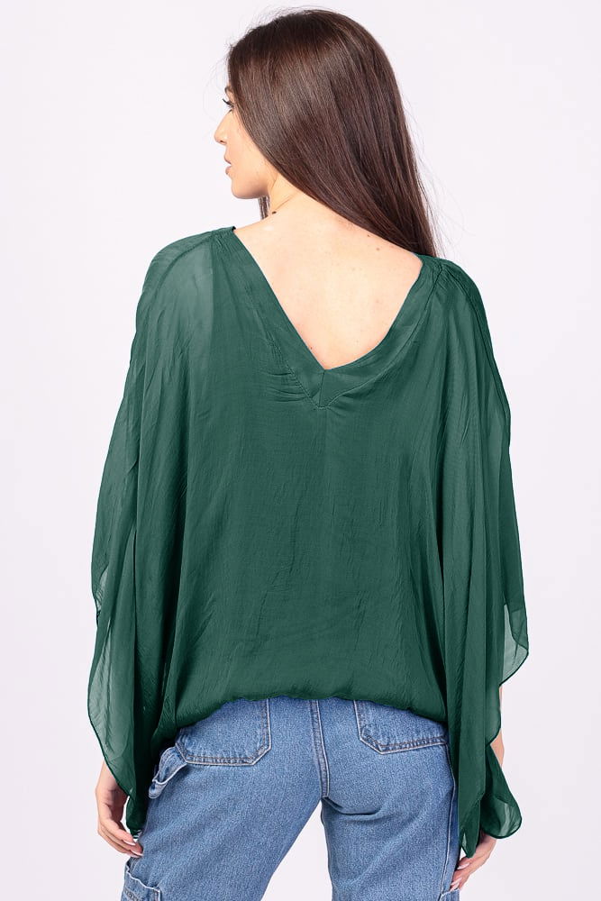 Shopika Bluza din matase si vascoza verde inchis, cu decolteu in V in fata si pe spate