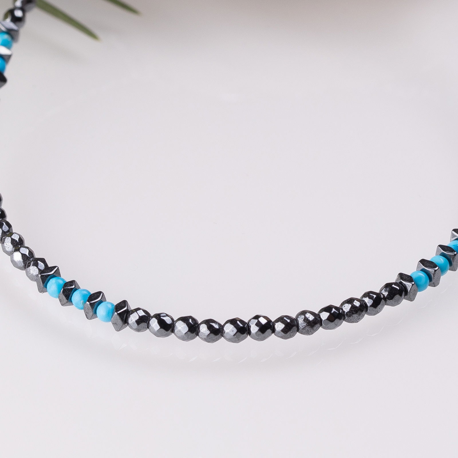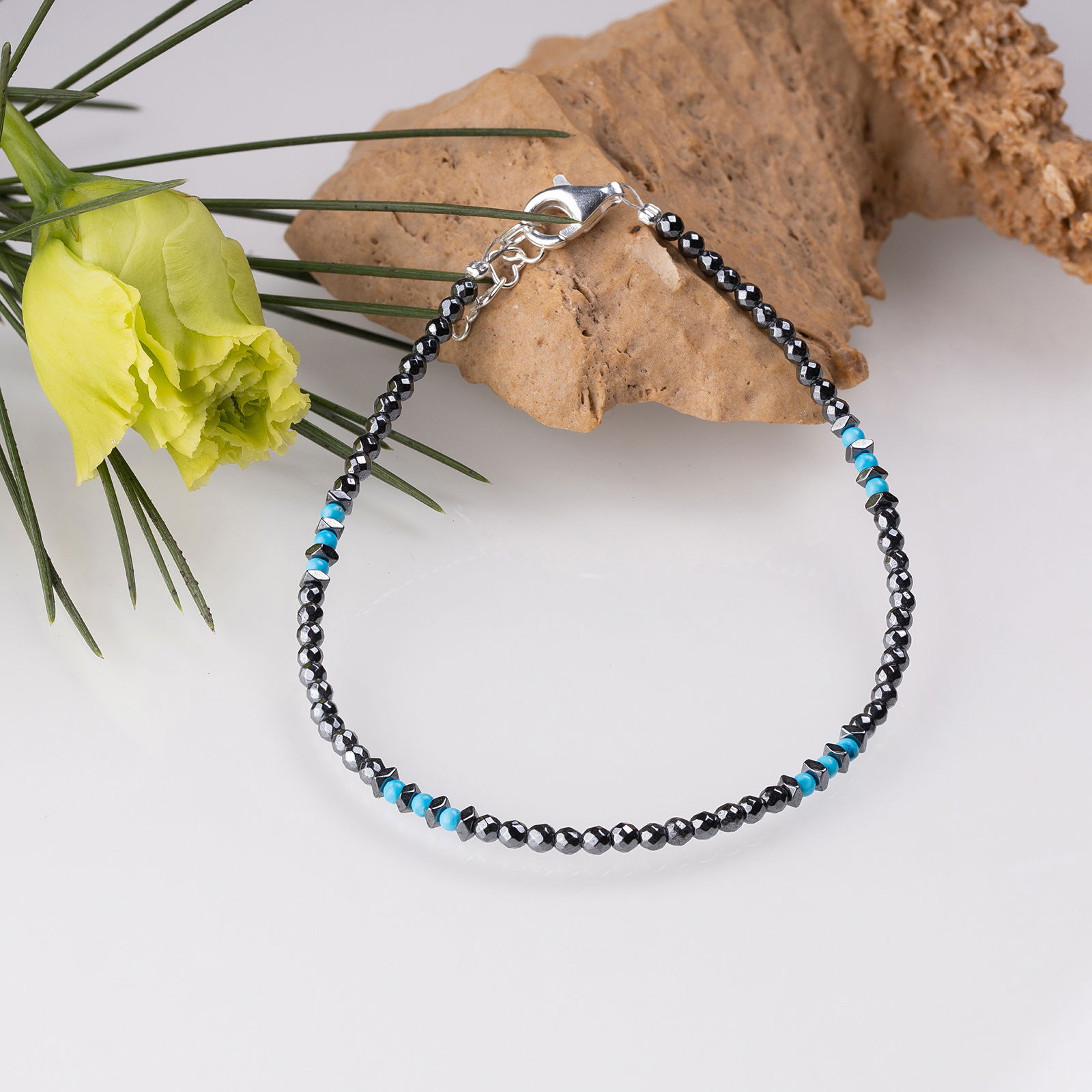 Maia Colt Bratara argint subtire din hematit argintiu inchis si turcoaz 1.5mm
