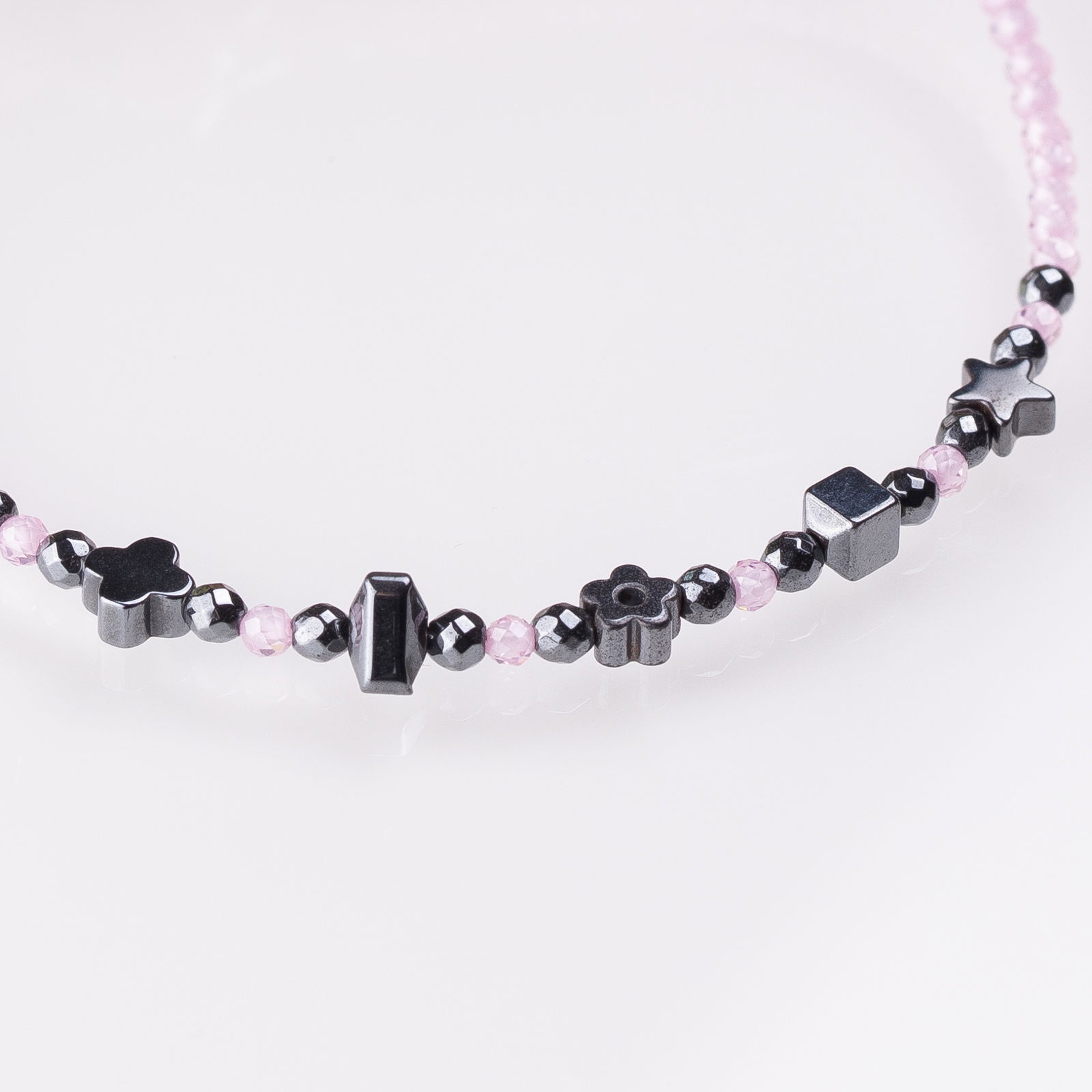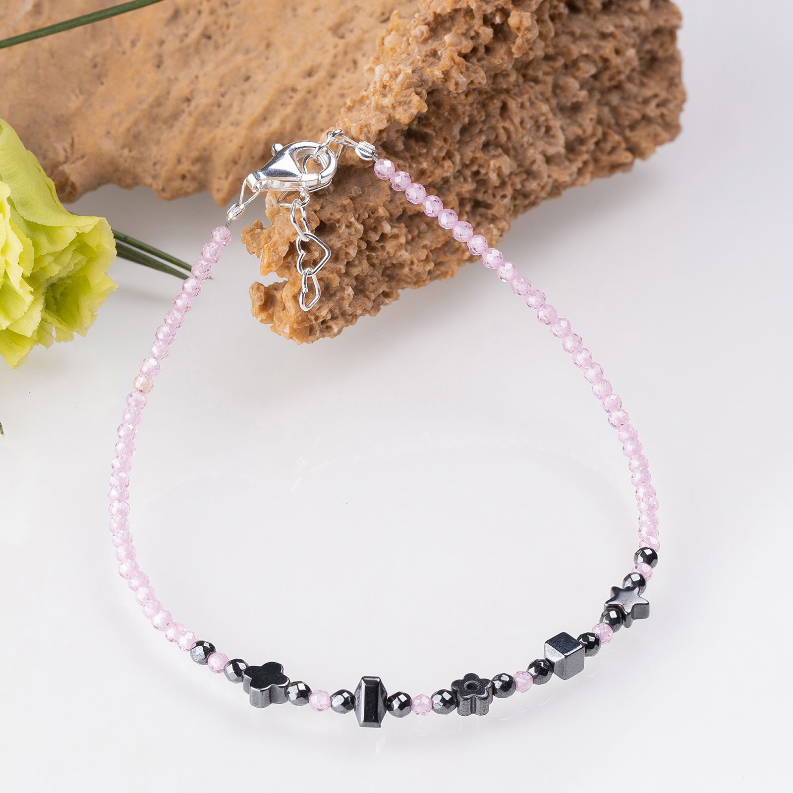 • Bratara handmade cu pietre fatetate din cubic zirconia roz deschis de 1,5 mm.