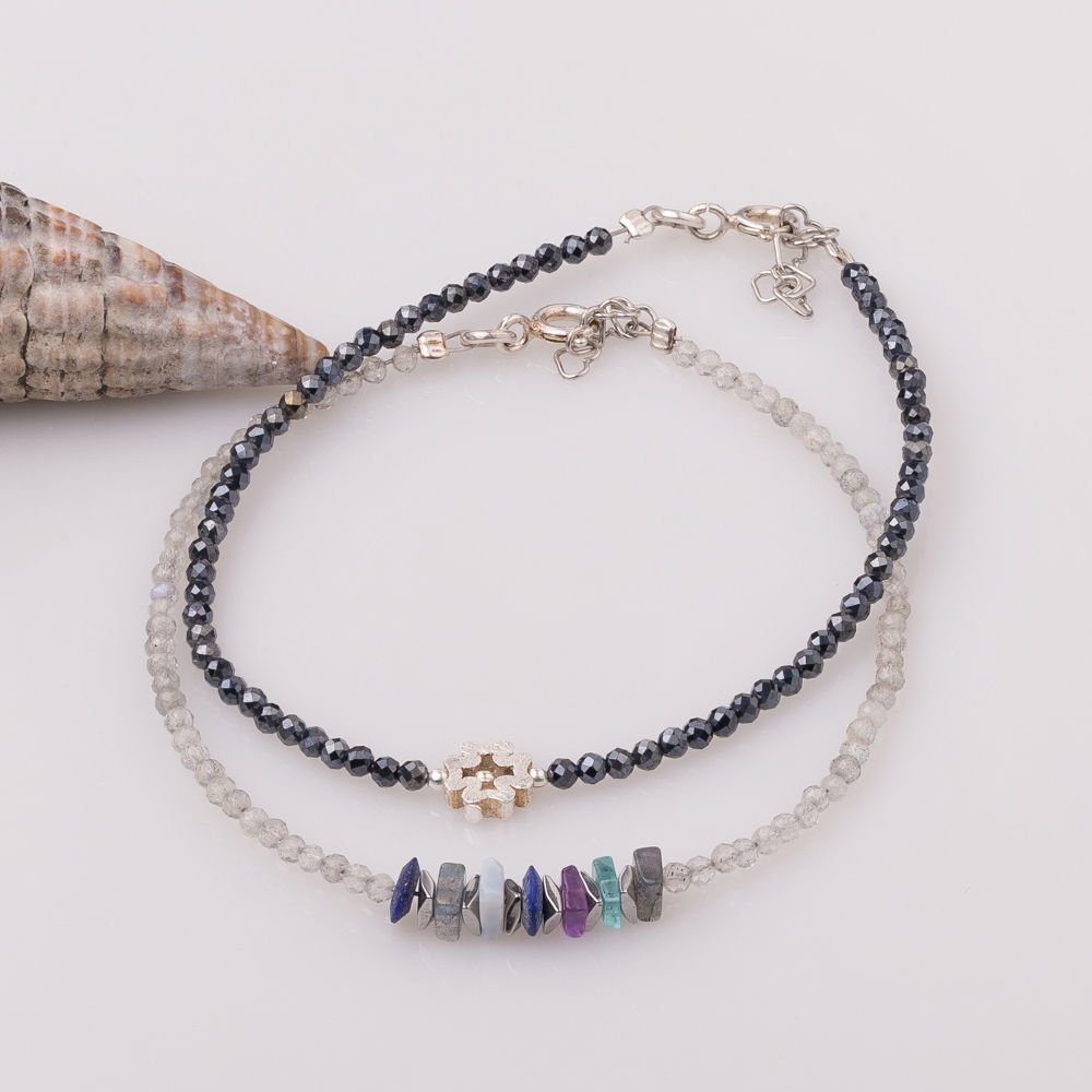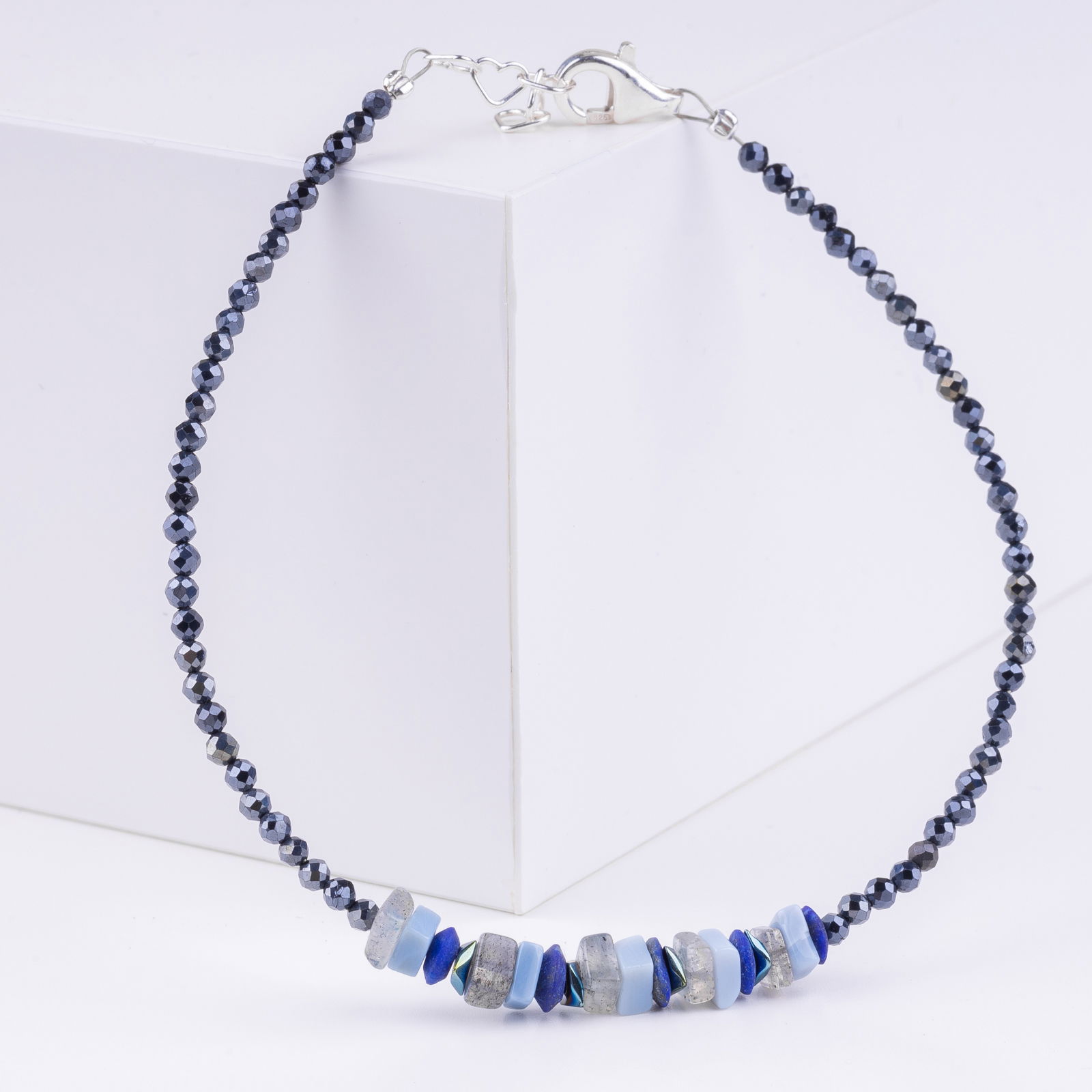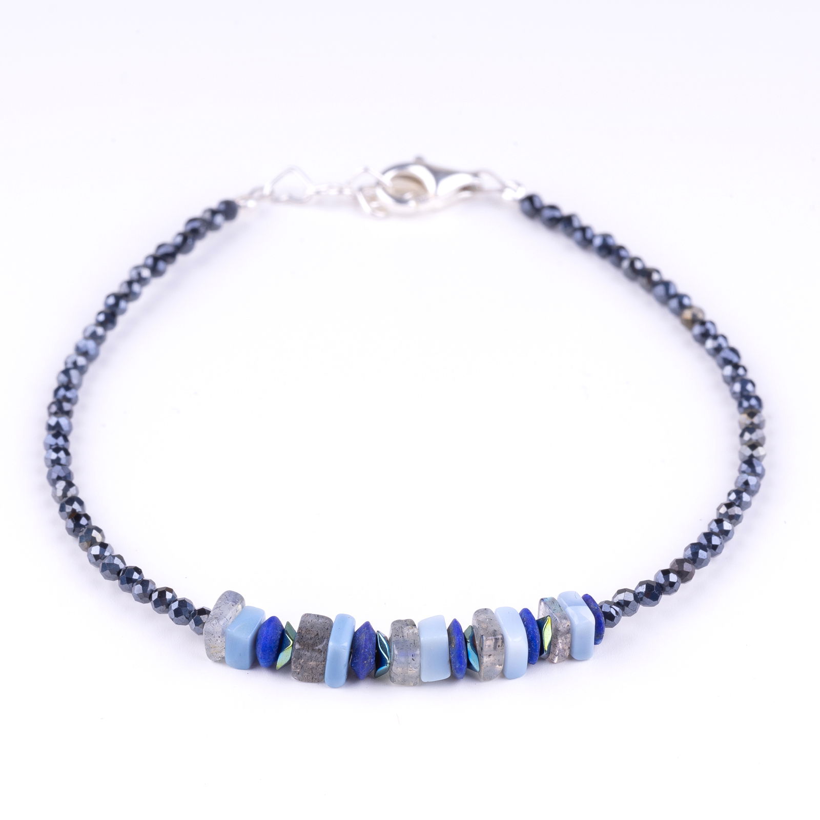 Bratara handmade subtire din pietre fatetate de spineli cu tenta albastruie de 1,5 mm.