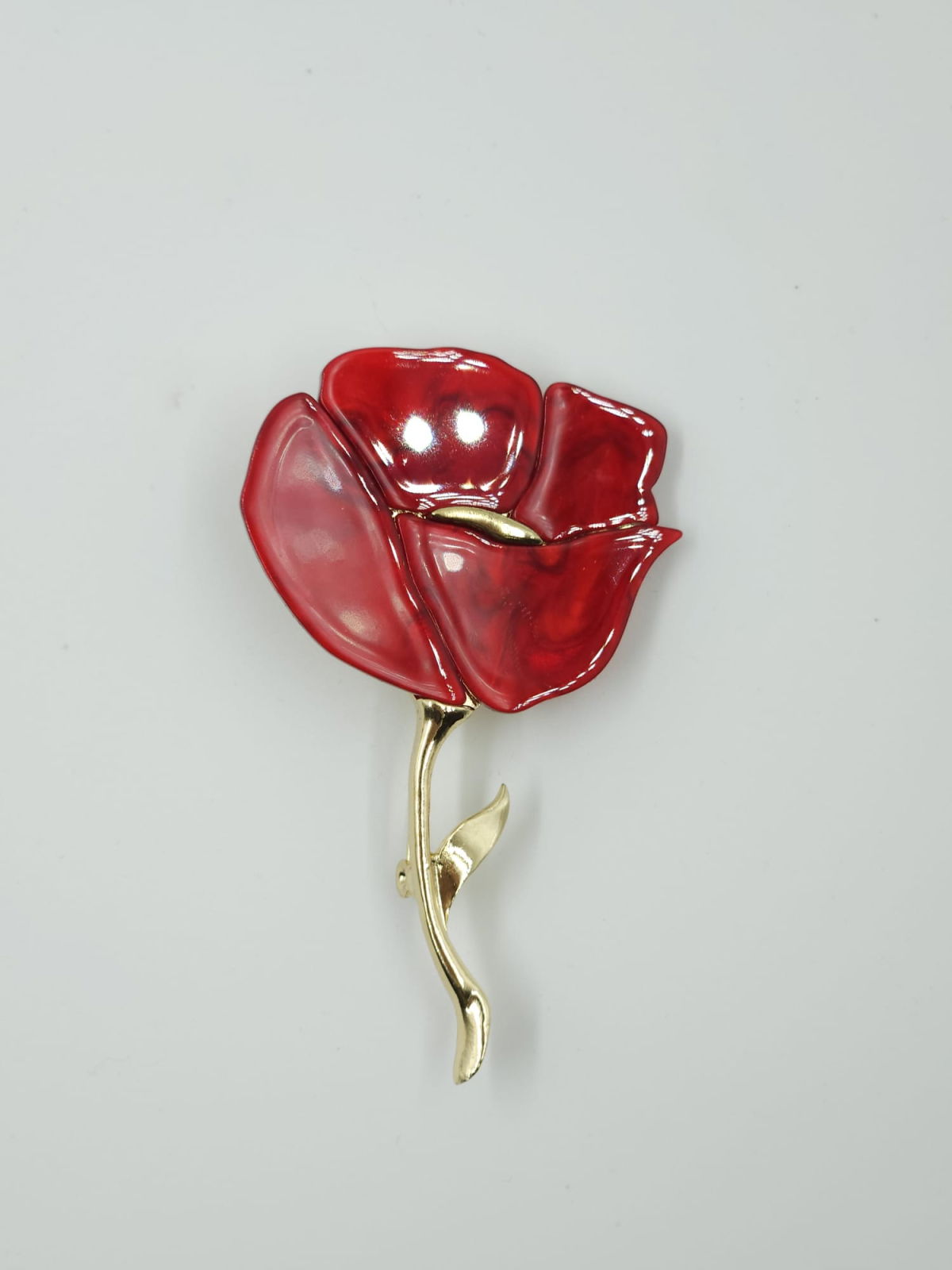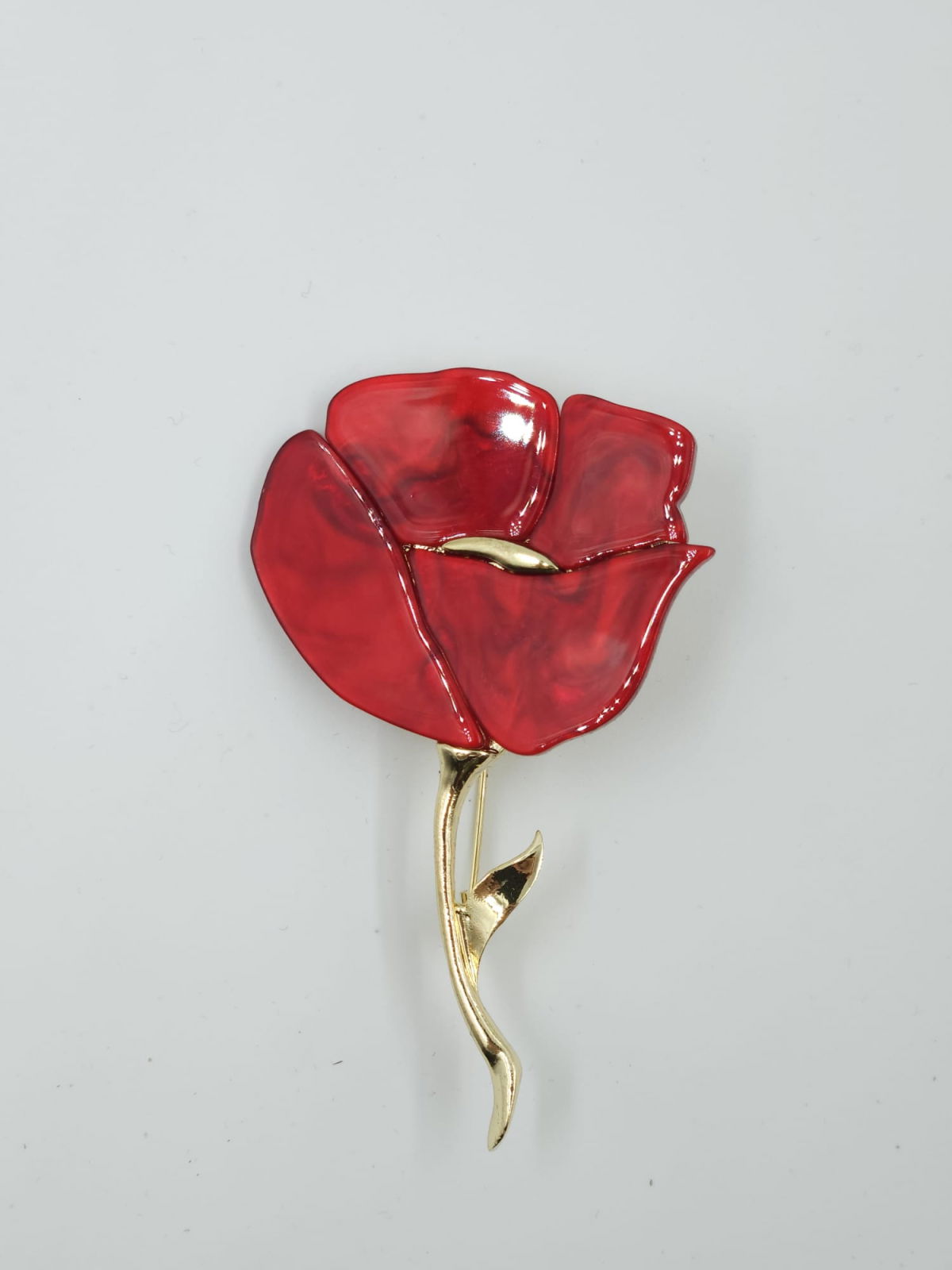 Shopika Brosa metalica aurie, mac rosu, produs premium