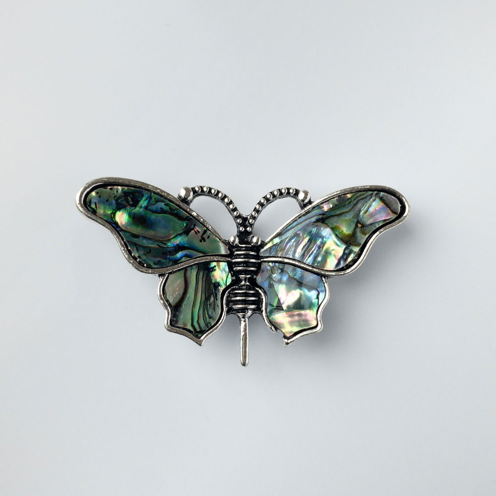 Shopika Brosa pandant metalica argintie, fluture cu aripi din paua shell naturala