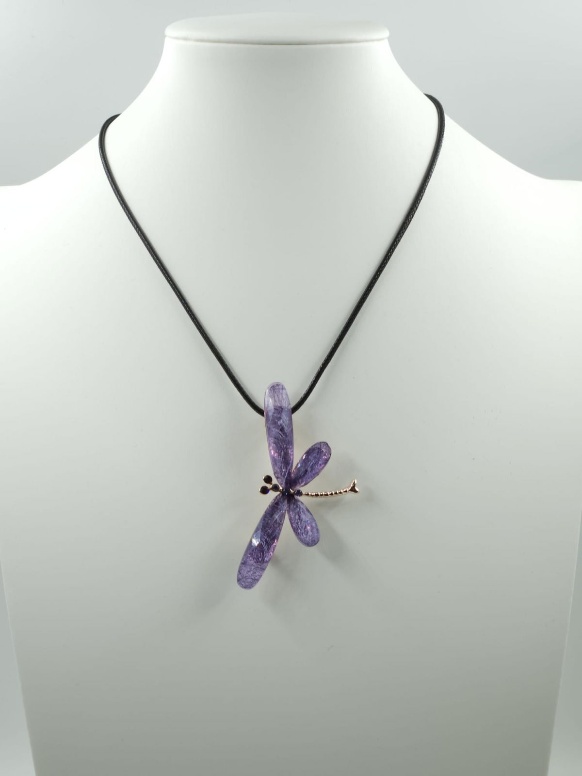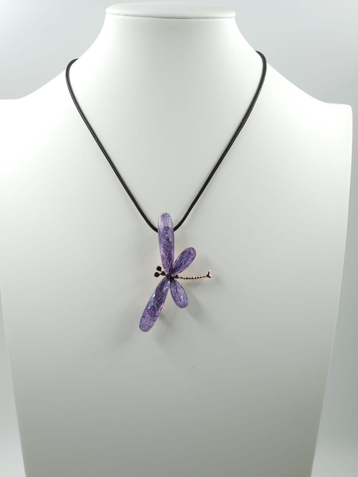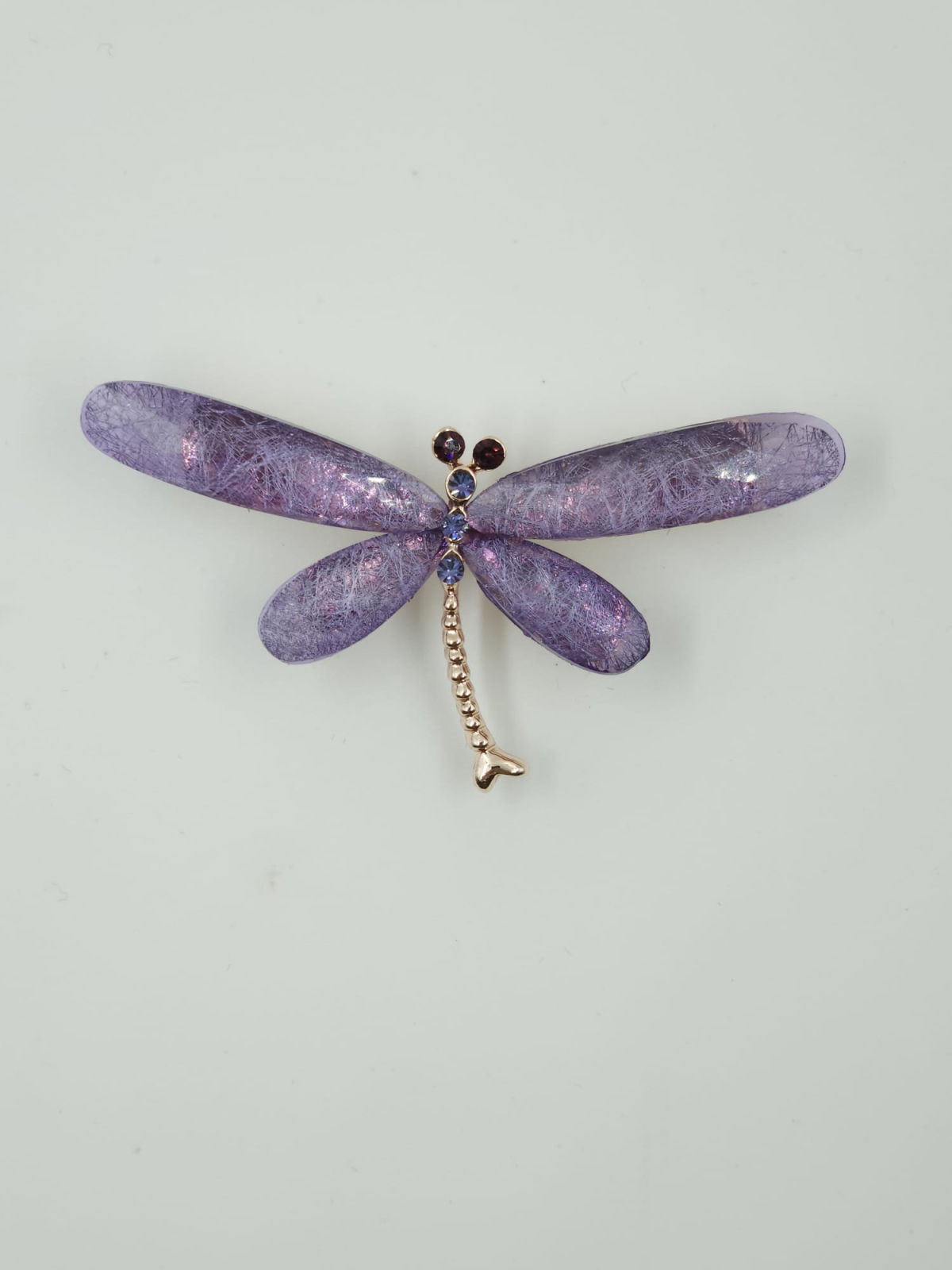 Shopika Brosa pandant metalica aurie, libelula fina cu aripi fatetate mov