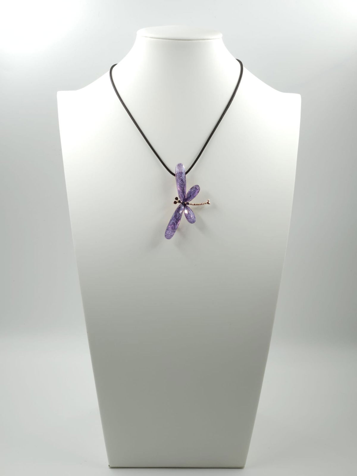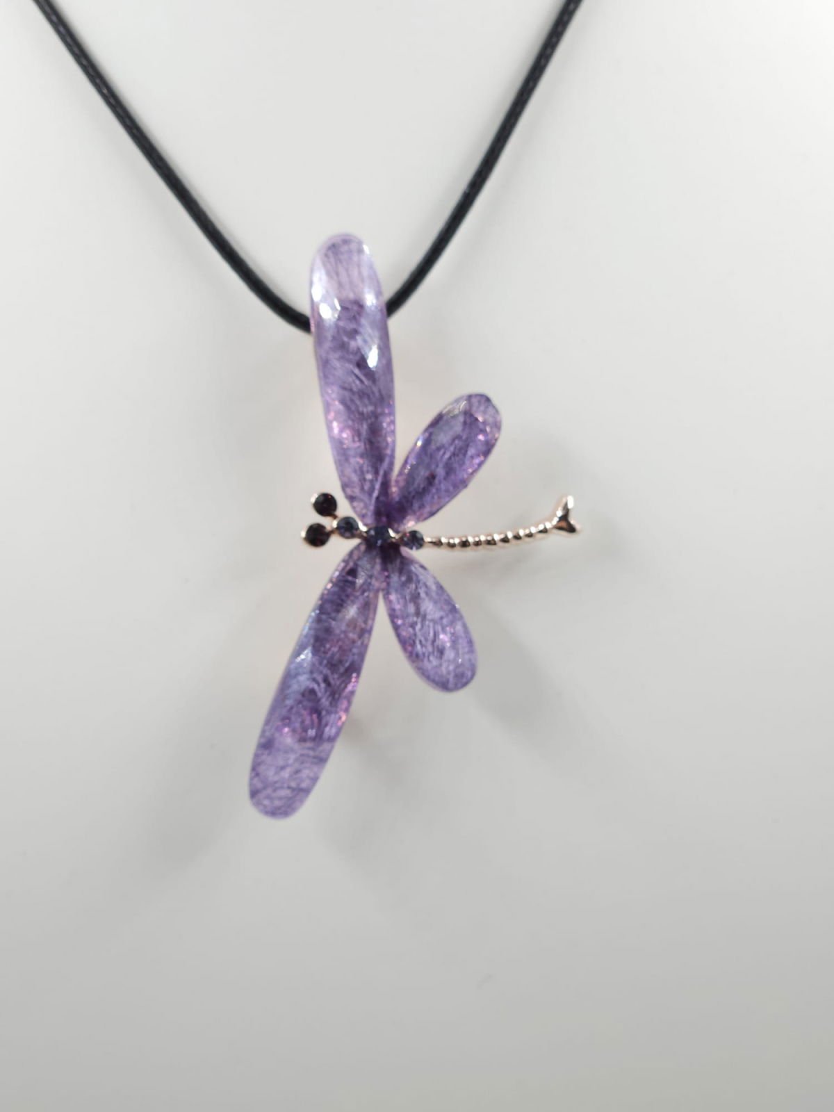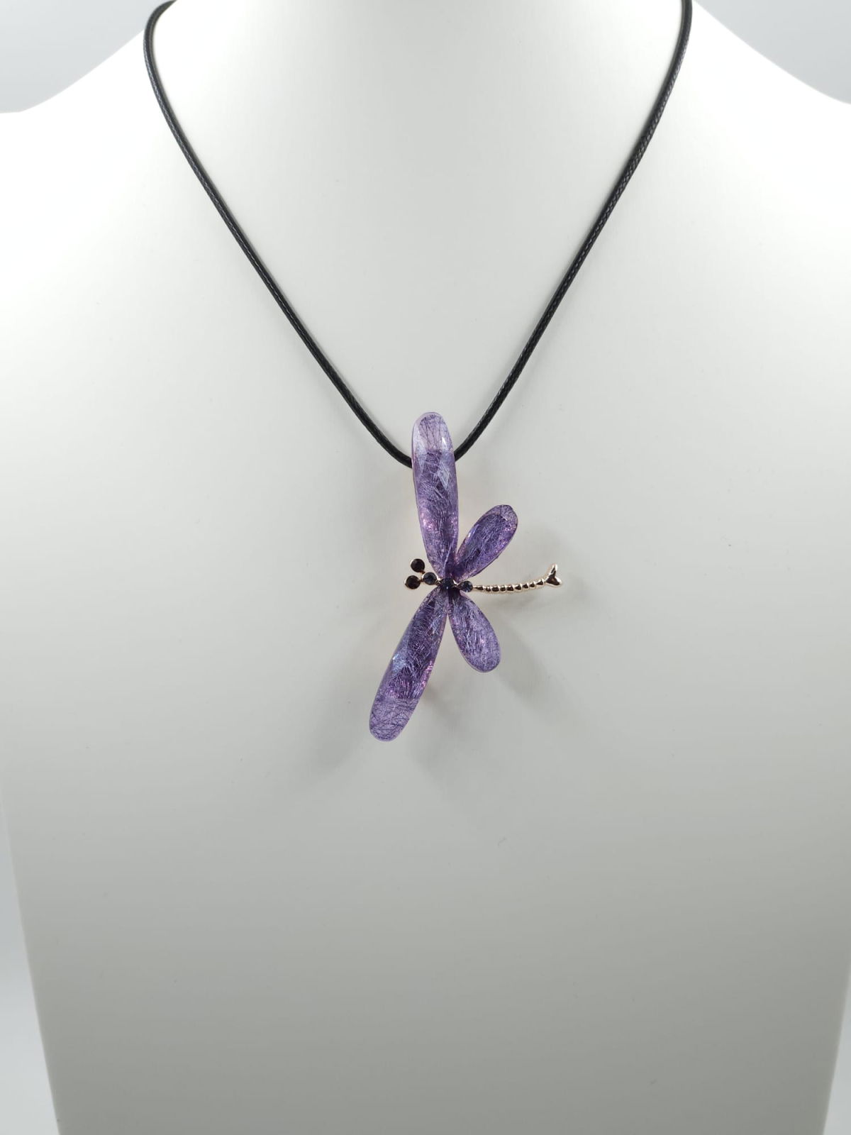 Shopika Brosa pandant metalica aurie, libelula fina cu aripi fatetate mov
