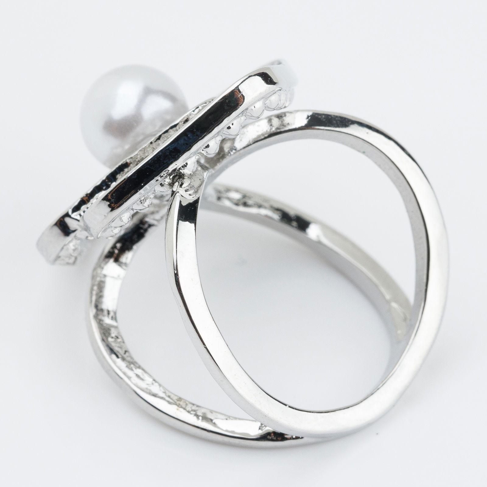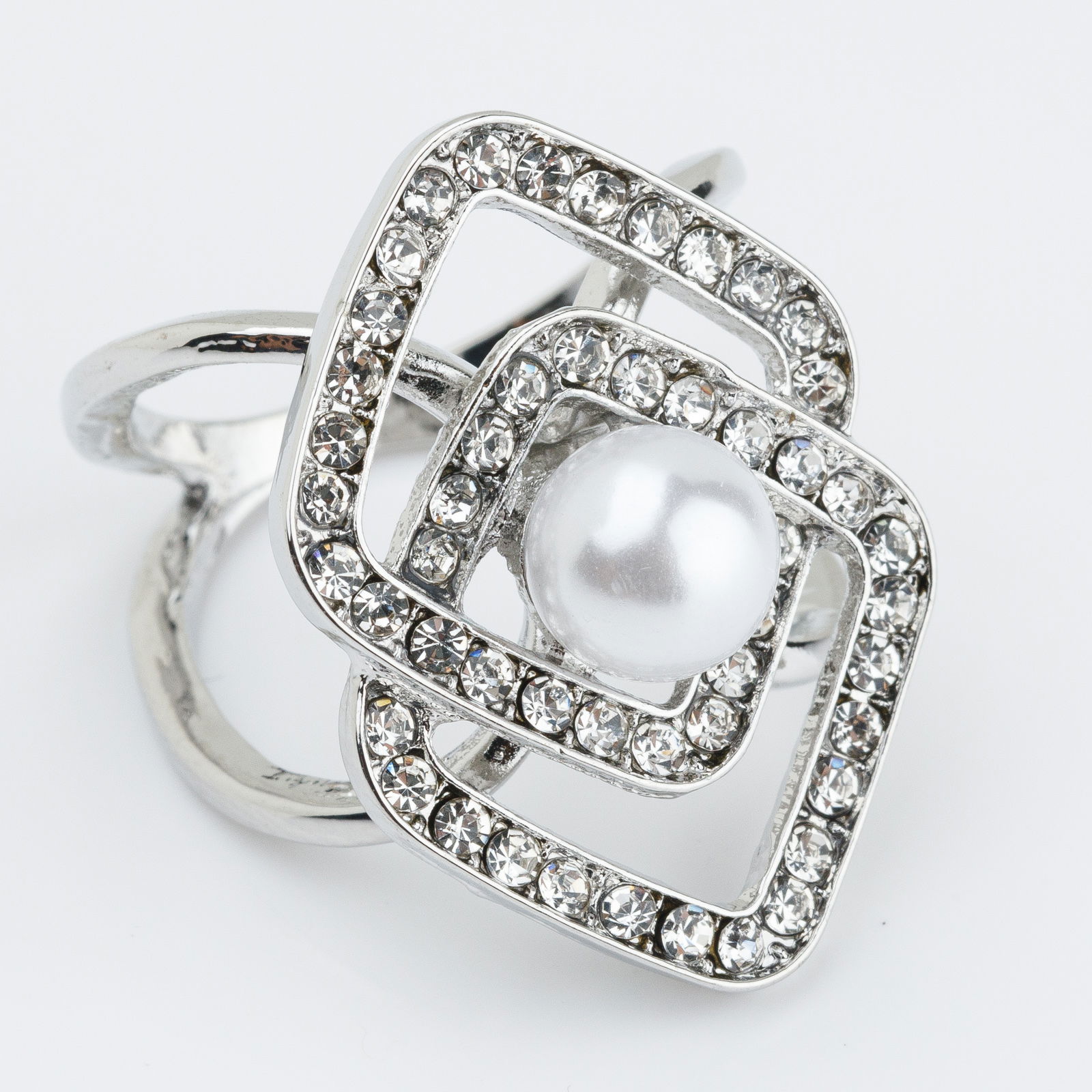 Shopika Brosa inel pentru esarfa cu forma geometrica argintie cu pietricele albe si perla