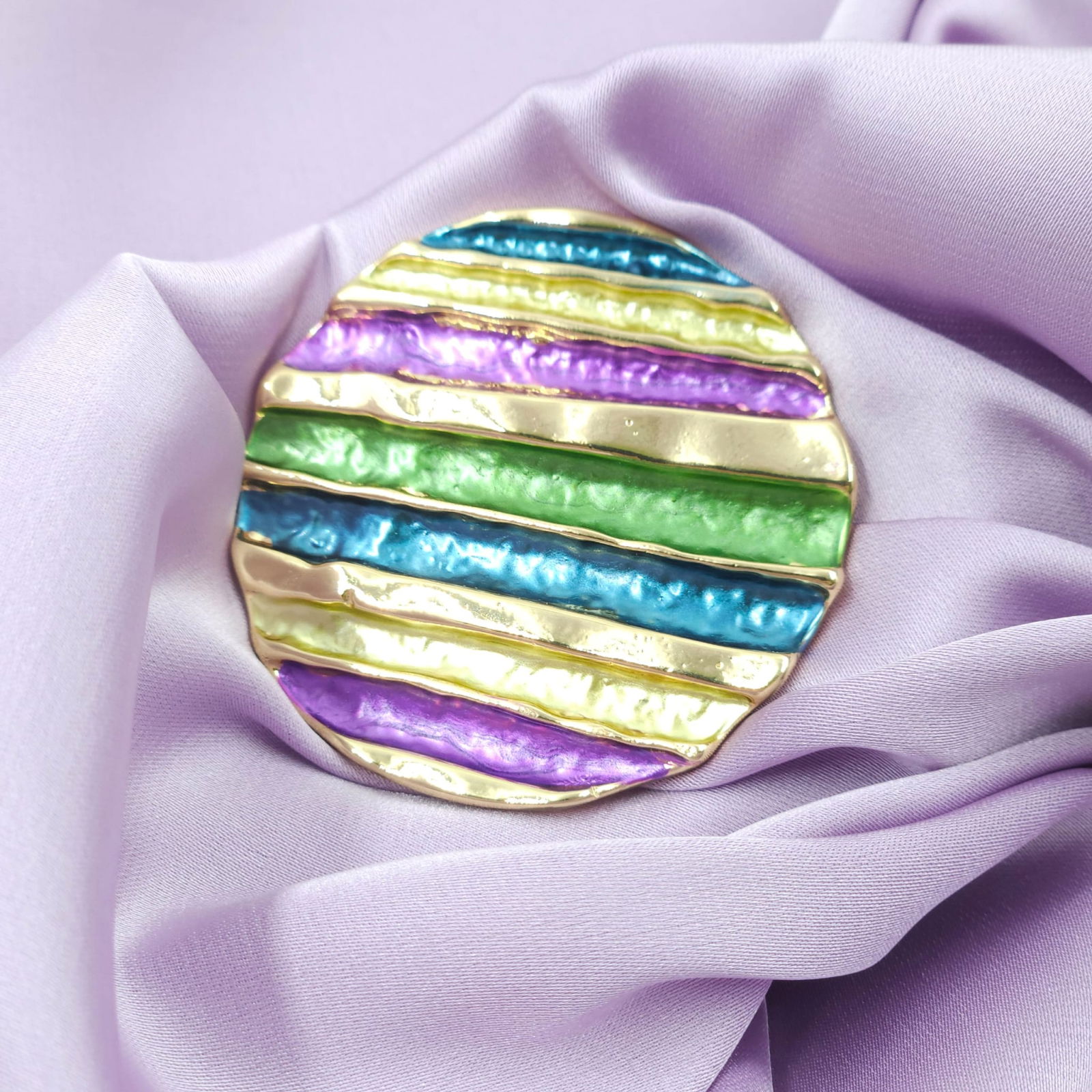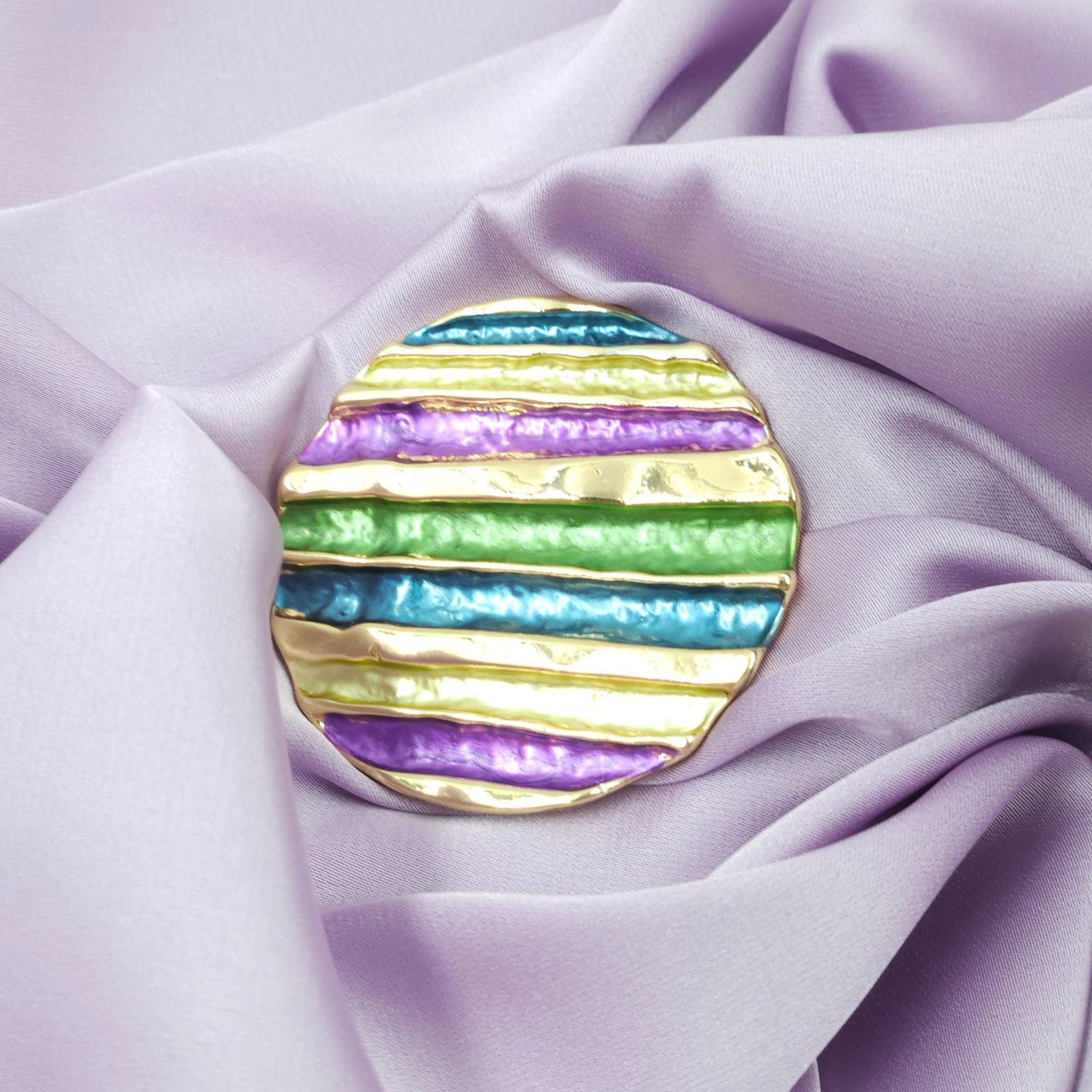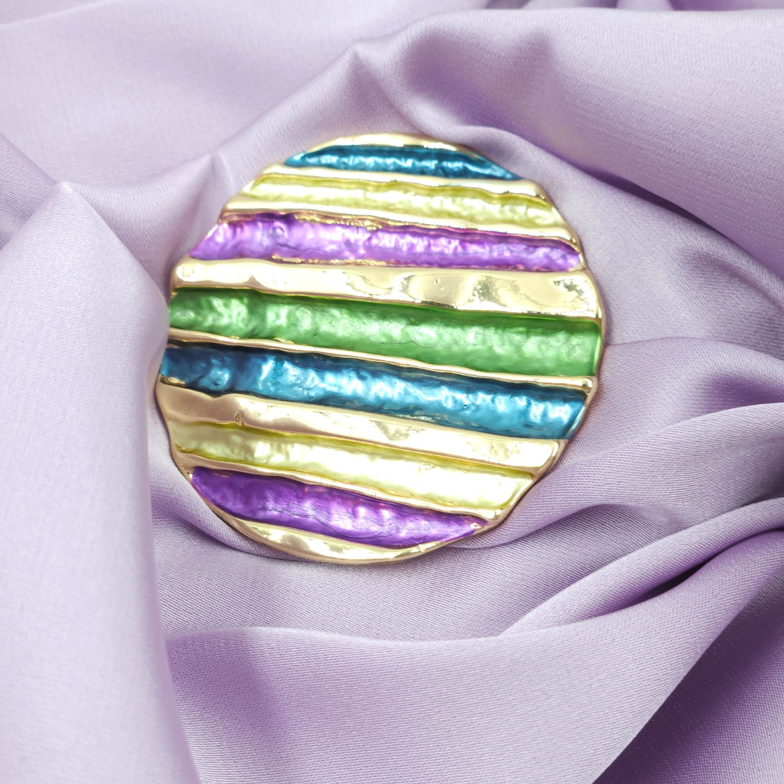 Shopika Brosa magnetica aurie, model geometric rotund cu mov, albastru si verde
