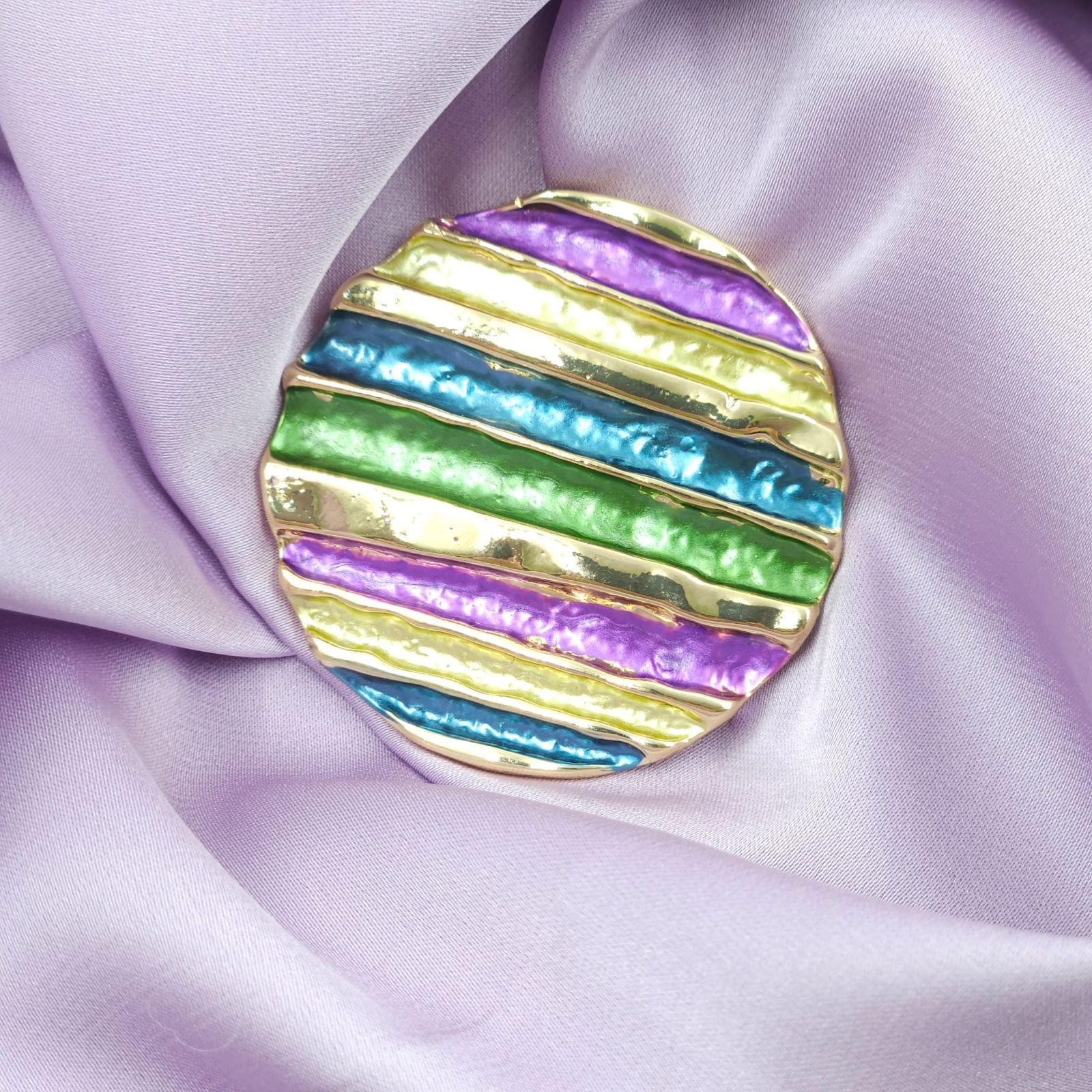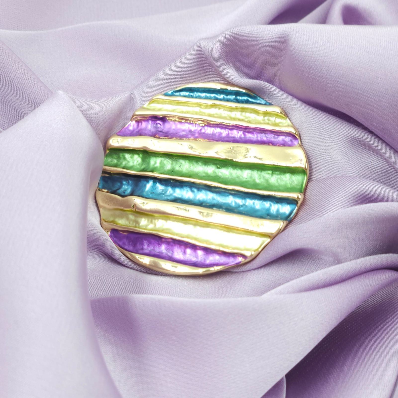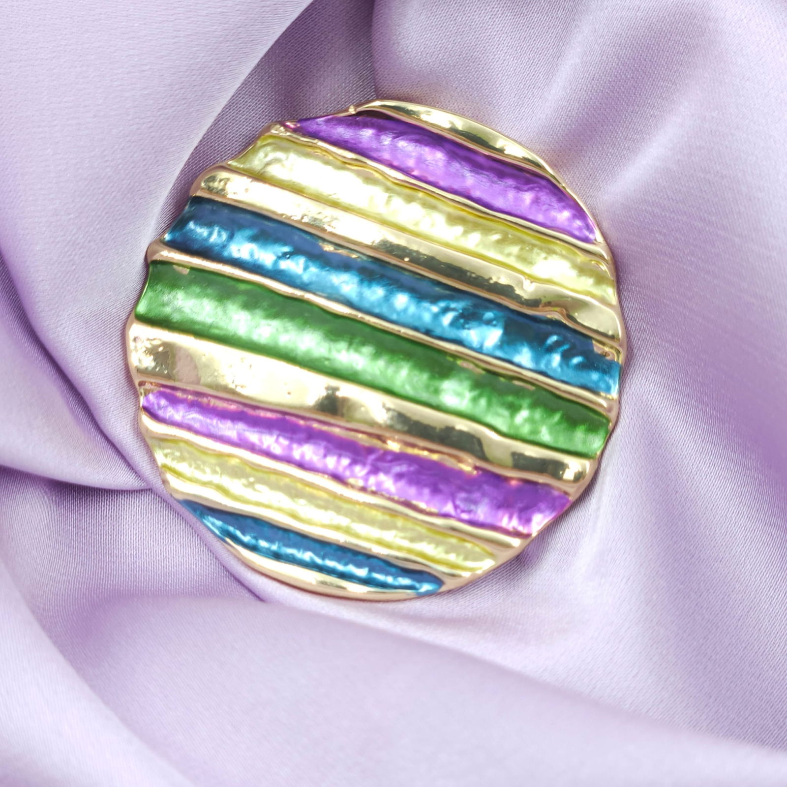Shopika Brosa magnetica aurie, model geometric rotund cu mov, albastru si verde