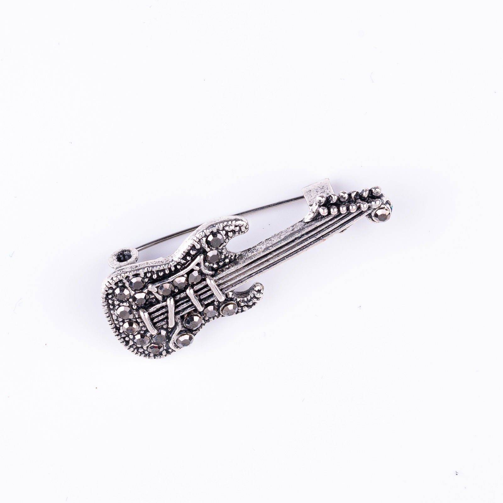 Shopika Brosa metalica argintie chitara rock cu pietricele argintii