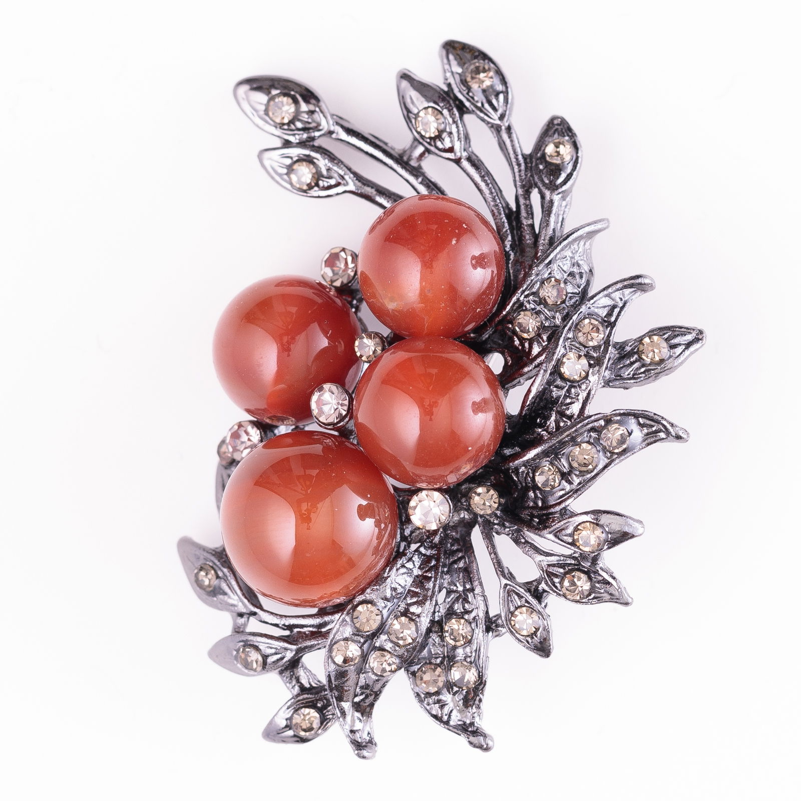 Shopika Brosa metalica argintie crenguta cu pietre naturale de carneol