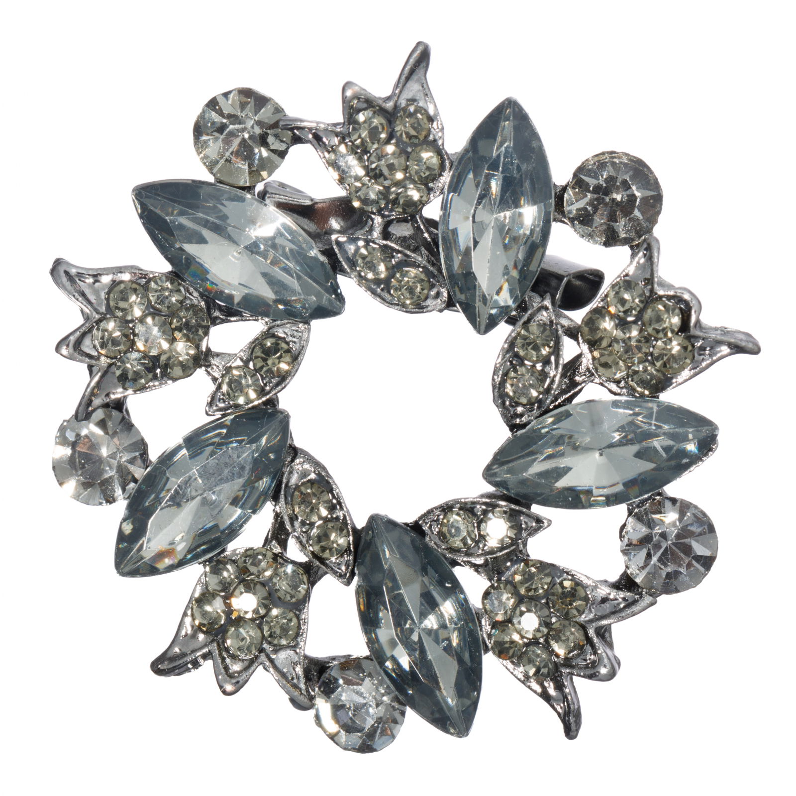 Shopika Brosa metalica argintie cu pietre fatetate, forma circulara cu flori