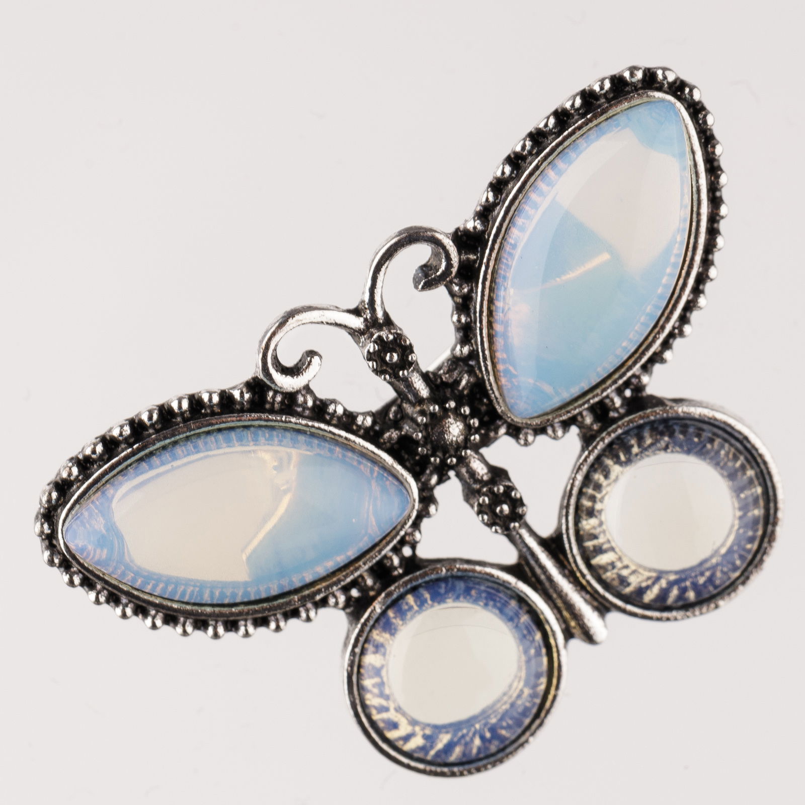 Shopika Brosa metalica argintie fluture cu aripi din piatra lunii naturala