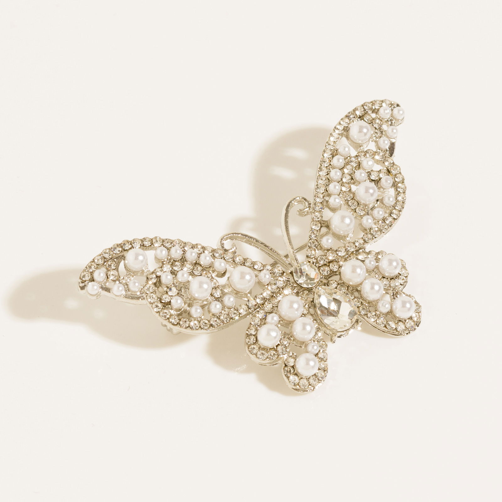 Shopika Brosa metalica argintie fluture cu perle si pietre mici, fine