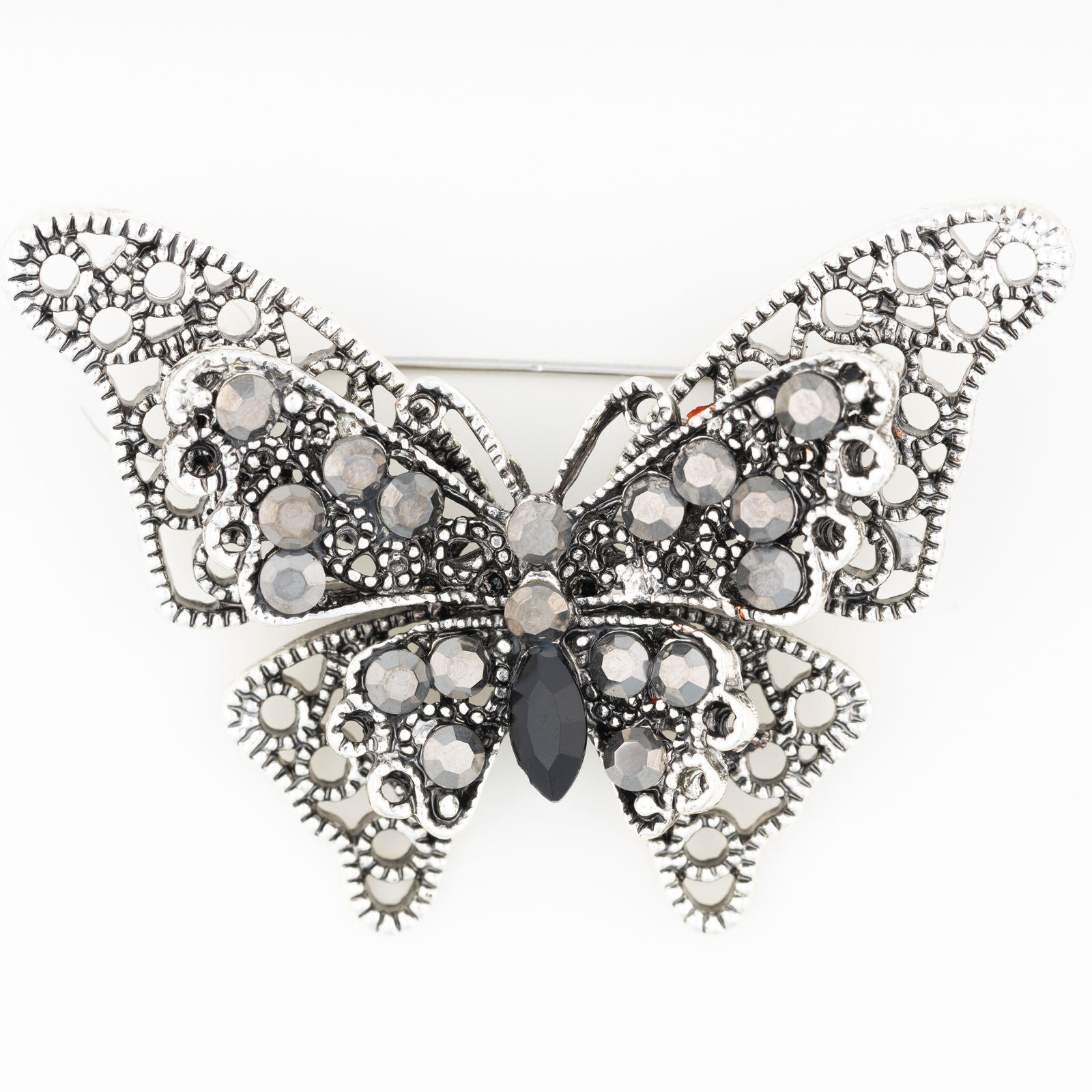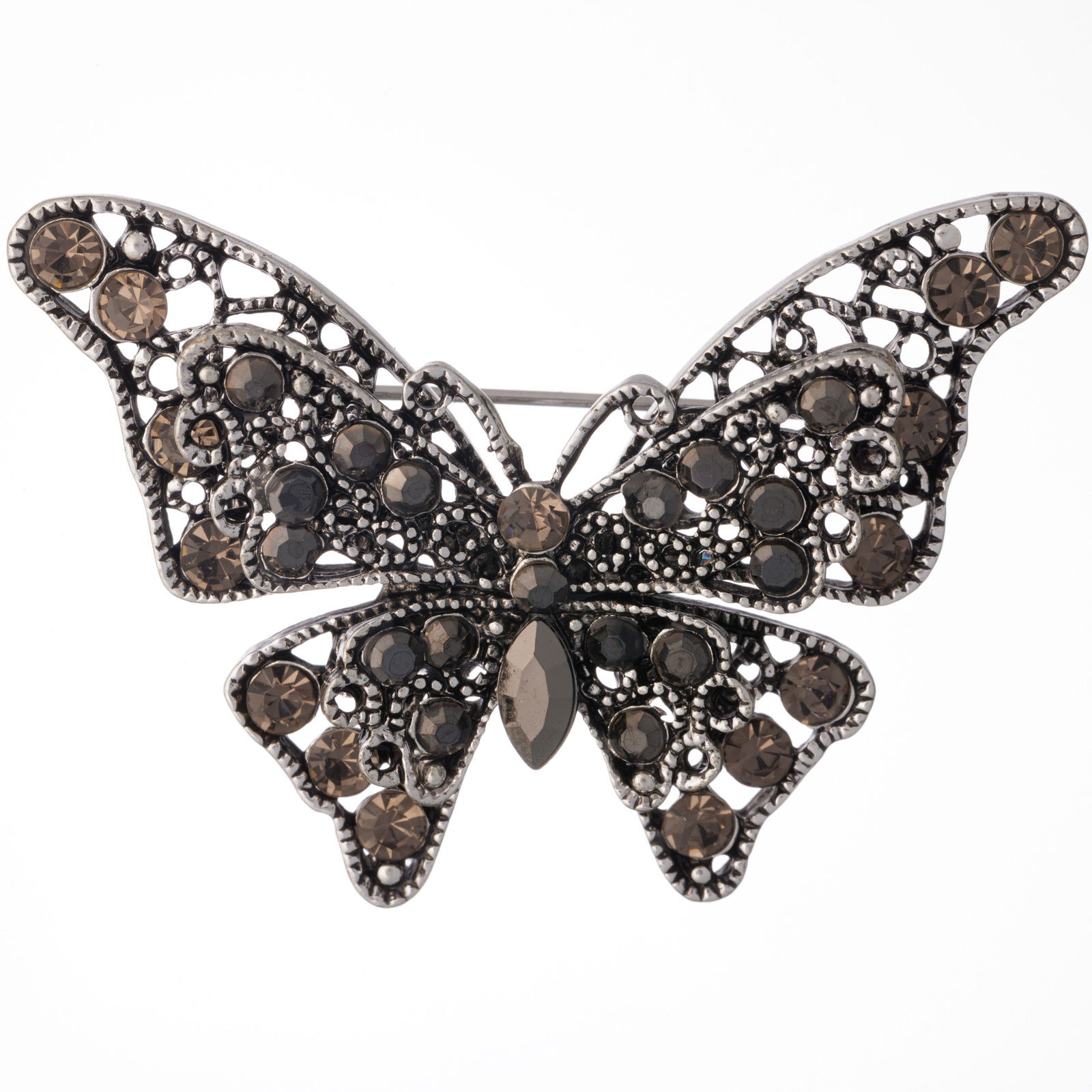 Shopika Brosa metalica argintie fluture cu pietricele argintii si doua randuri de aripi