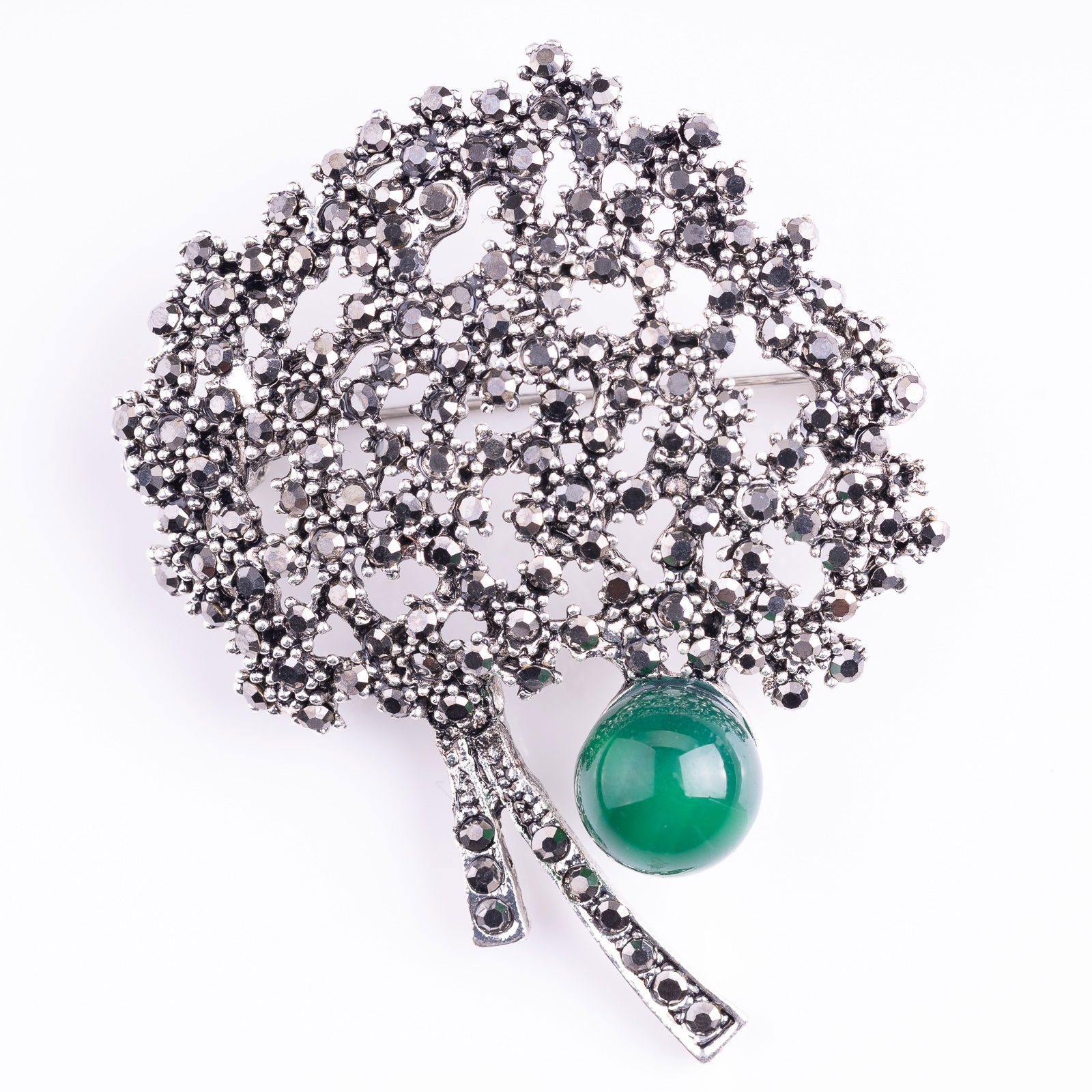 Shopika Brosa metalica argintie Pomul Vietii cu pietricele mici argintii si agata verde
