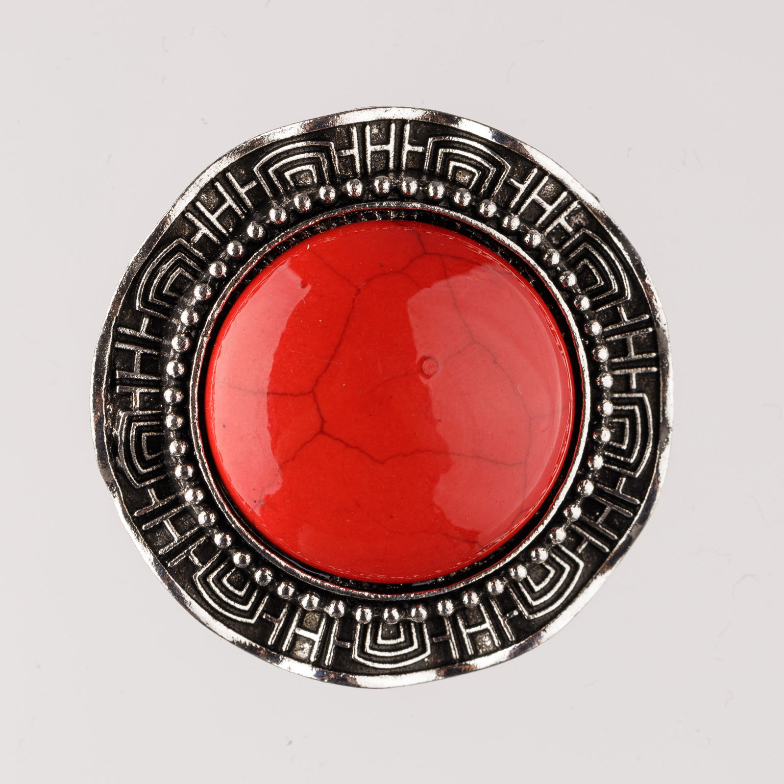 Shopika Brosa metalica argintie, rotund cu piatra naturala de coral