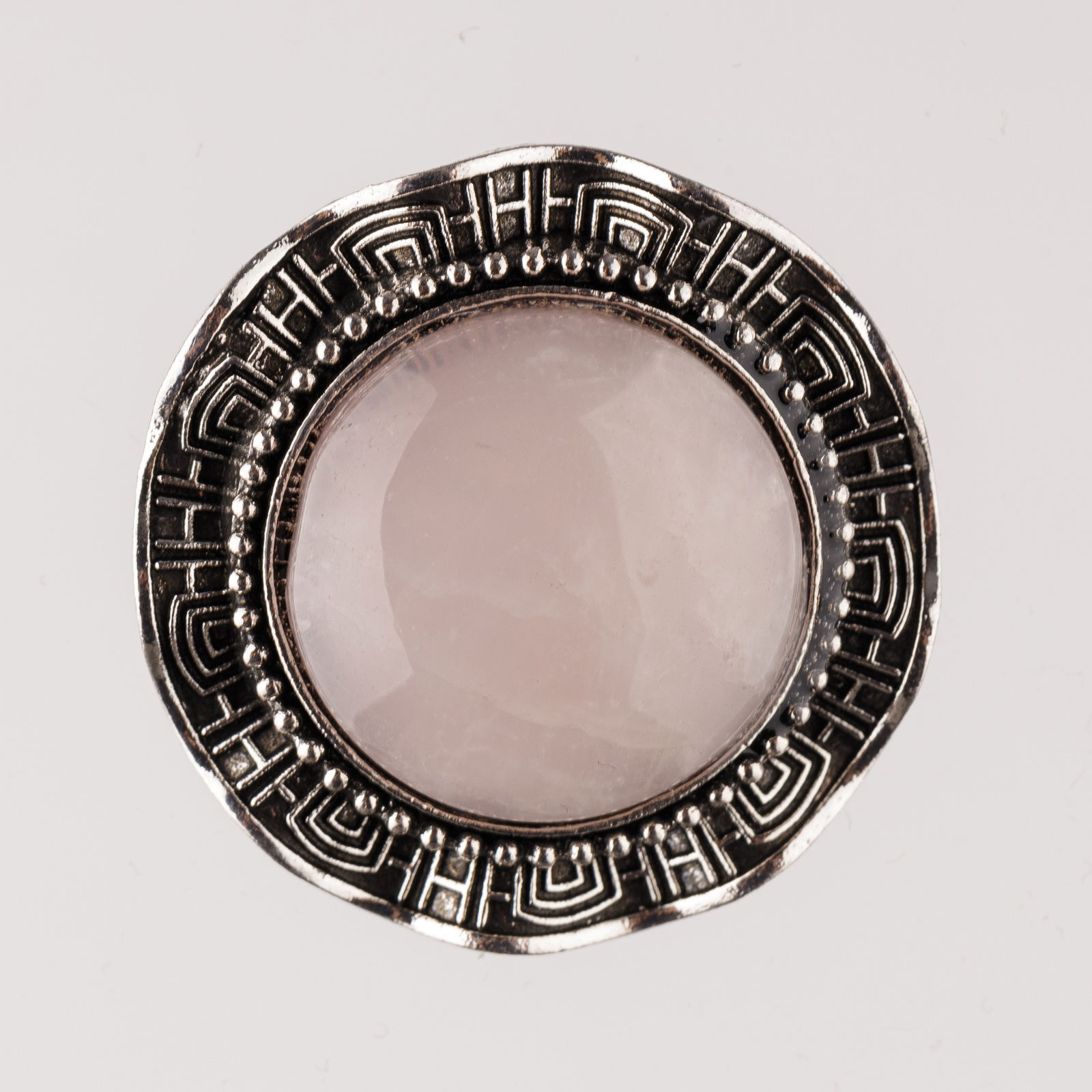 Shopika Brosa metalica argintie, rotund cu piatra naturala de cuart roz