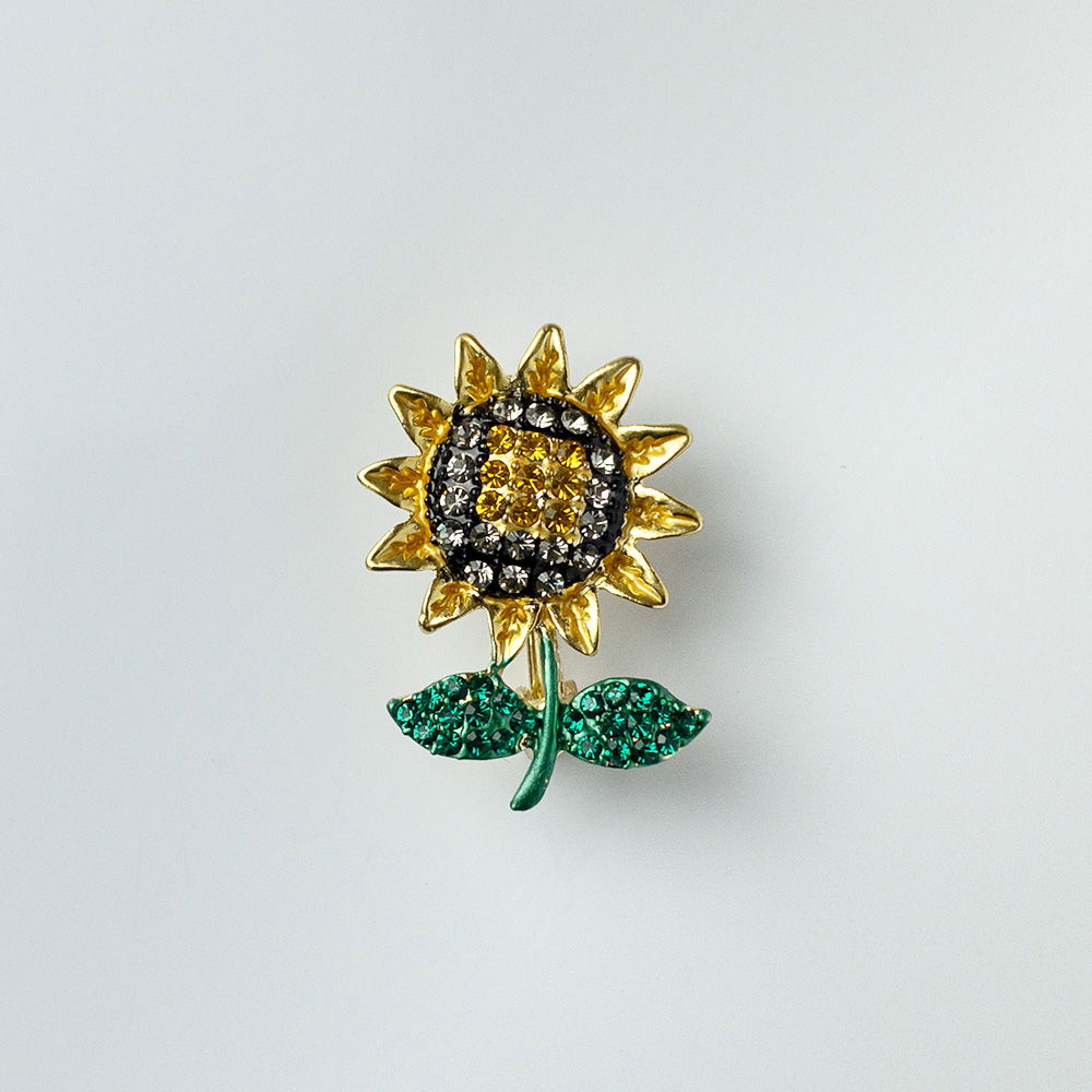 Shopika Brosa metalica aurie floarea soarelui miniaturala cu pietricele galbene si frunze verzi