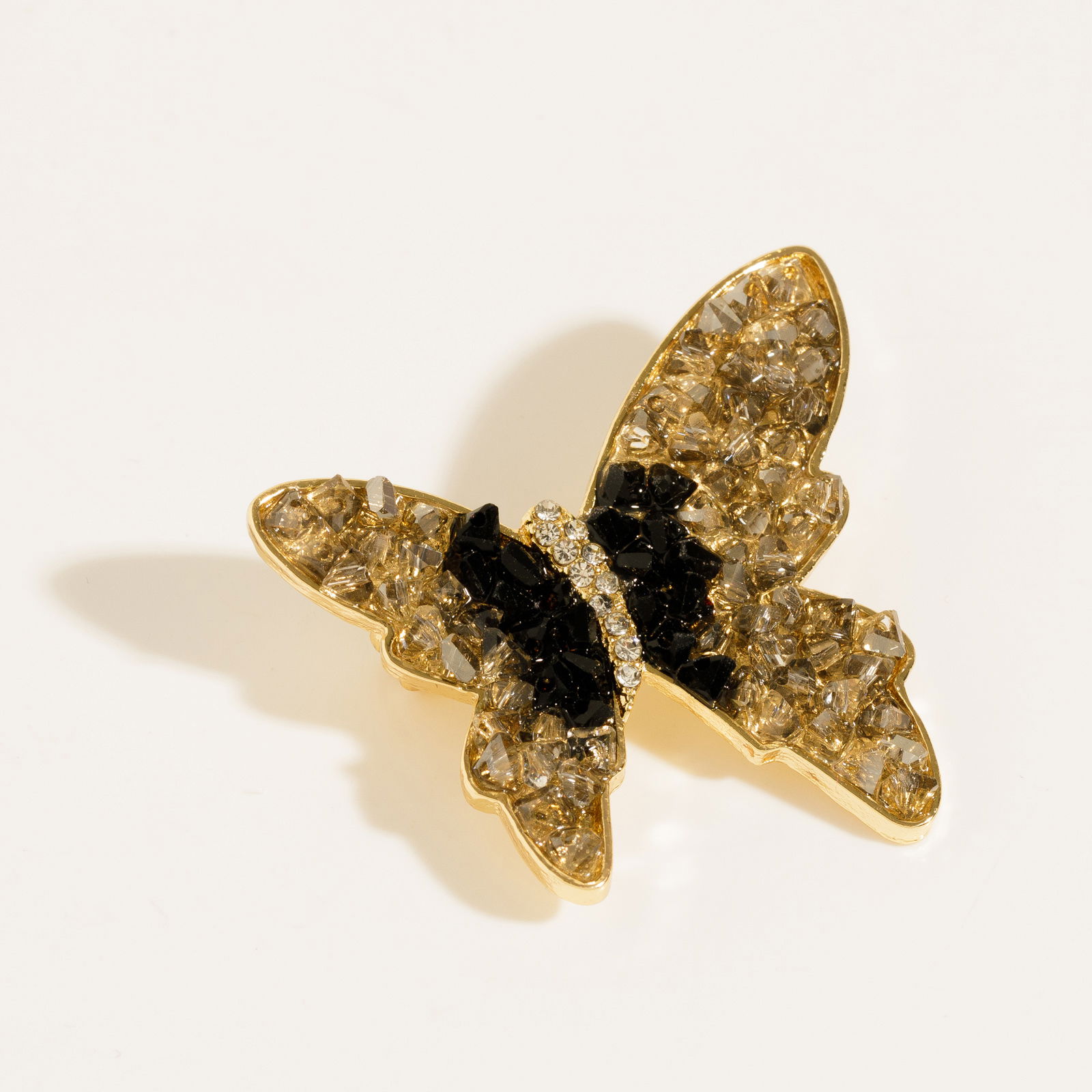 Shopika Brosa metalica fluture auriu cu petale din cristale aurii si negre fine, produs premium