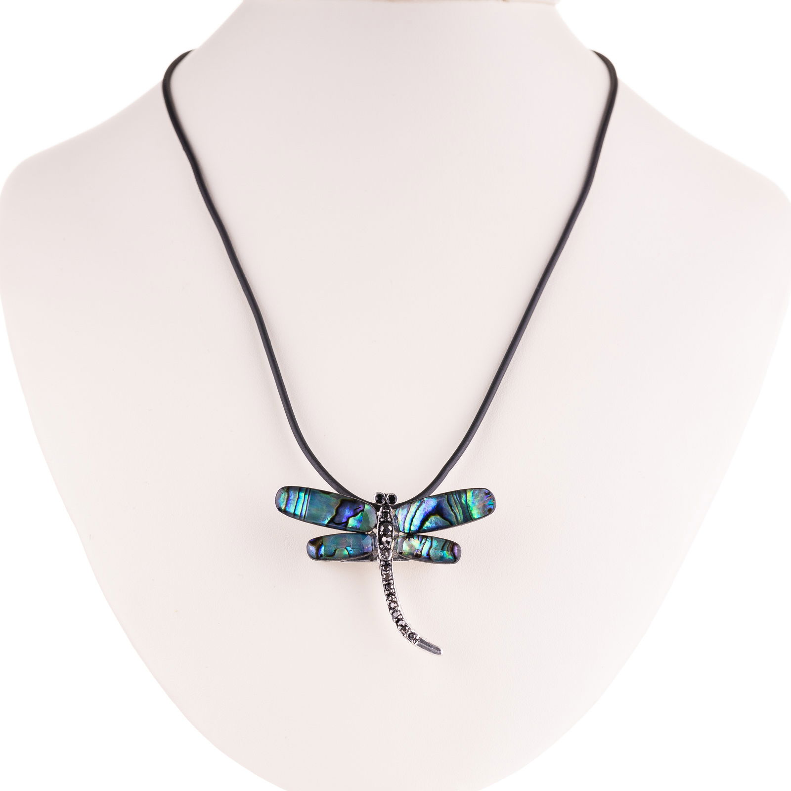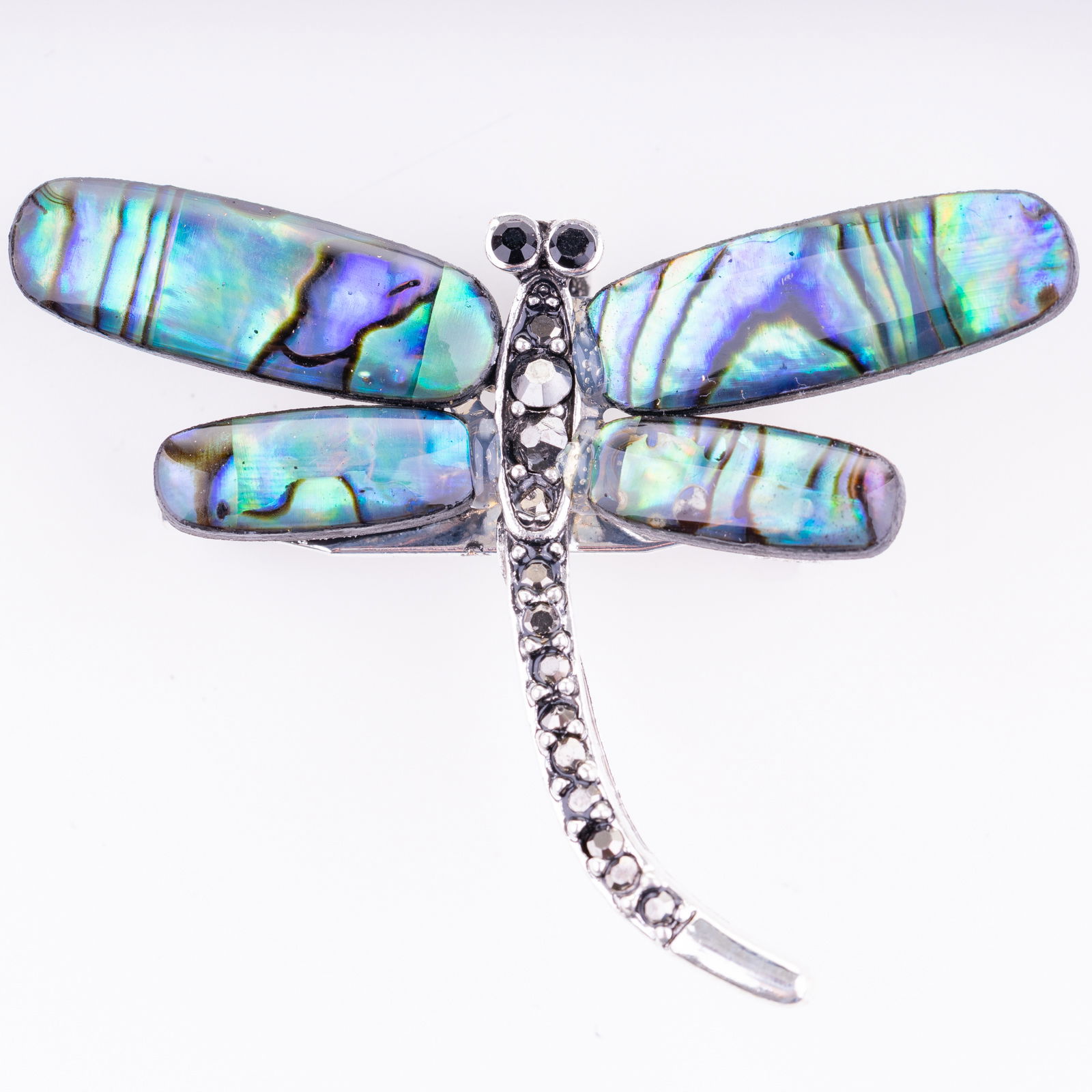 Shopika Brosa pandant metalica argintie cu scoica naturala paua shell, libelula cu pietricele argintii