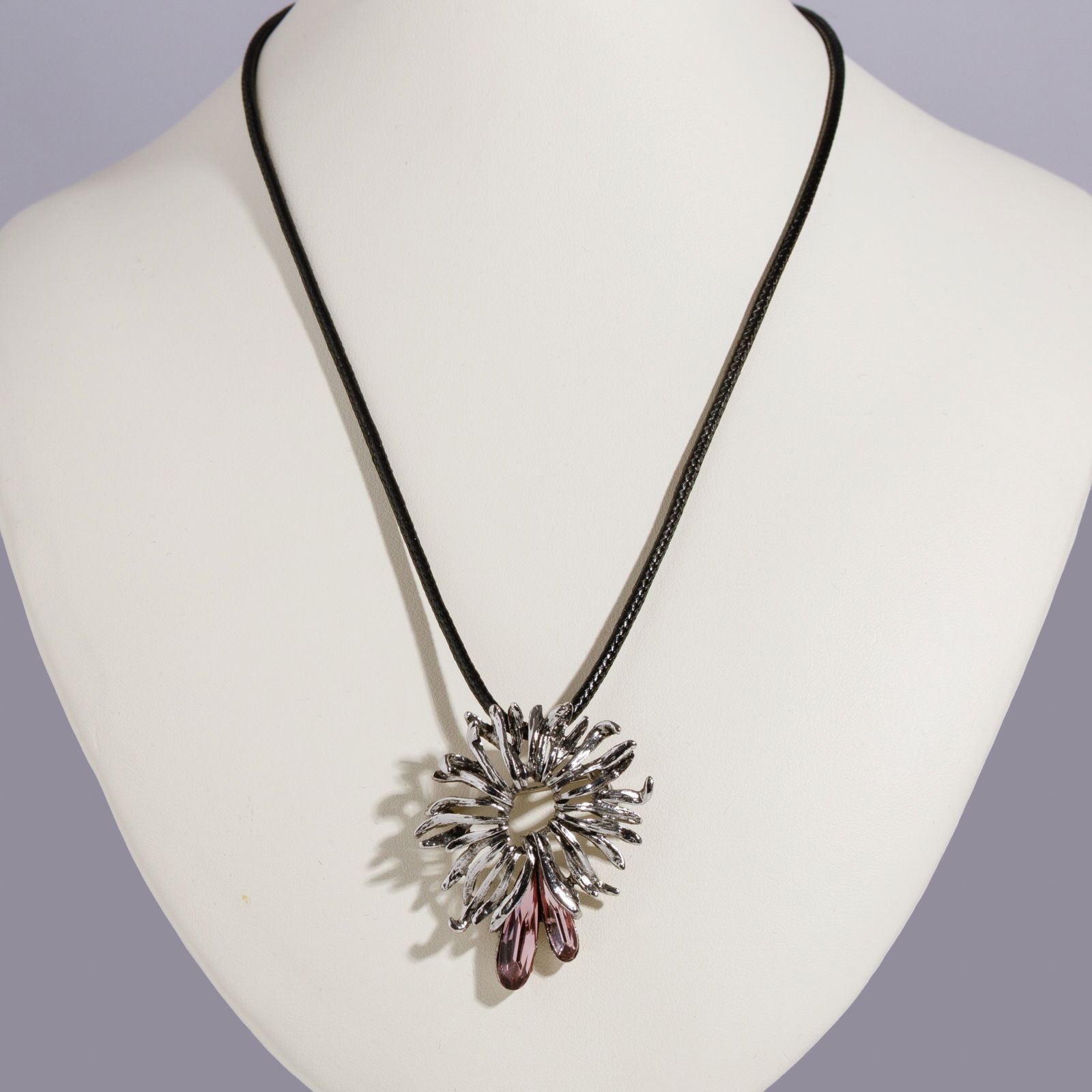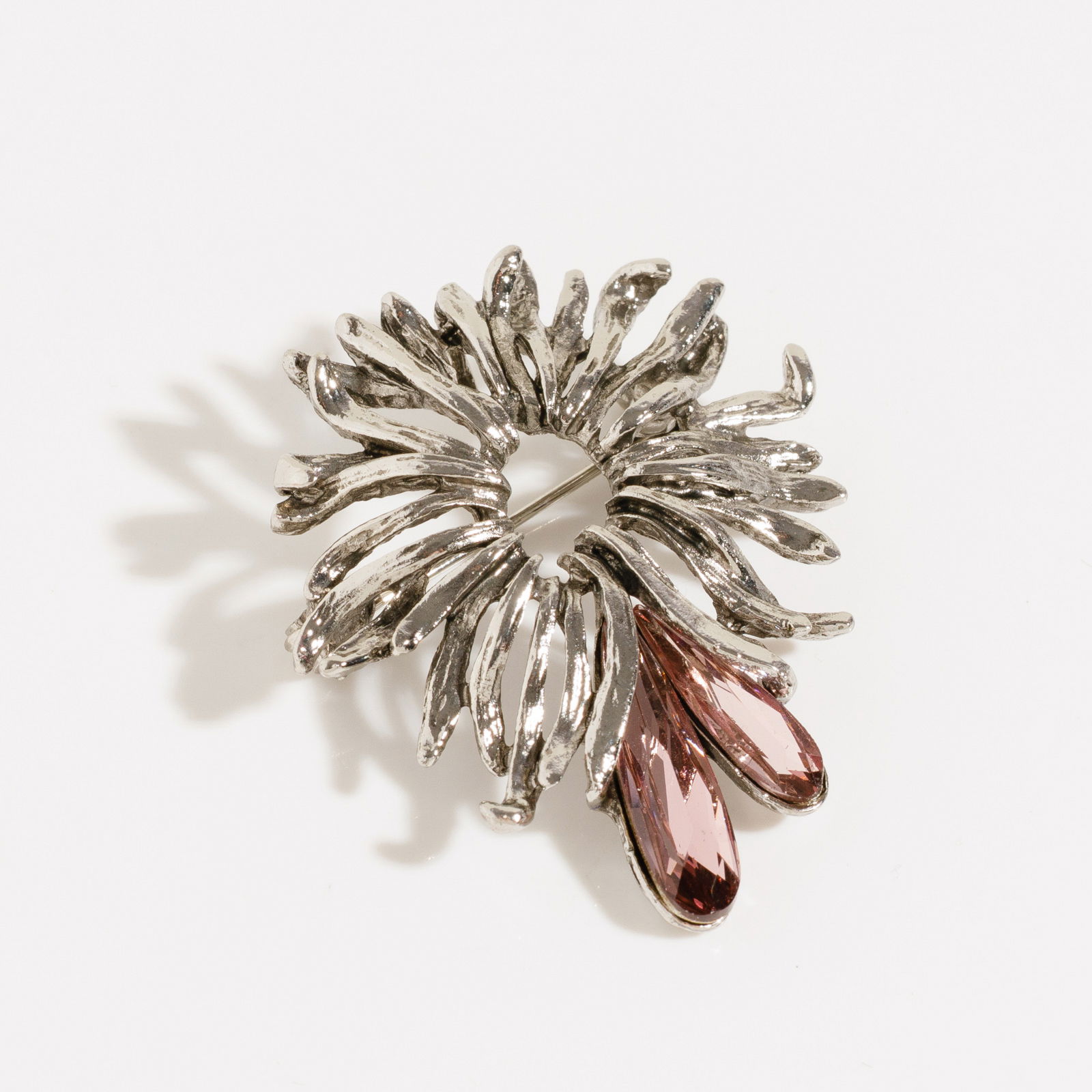 Shopika Brosa pandant metalica argintie, floare stilizata de papadie cu 2 petale din sticla fatetata