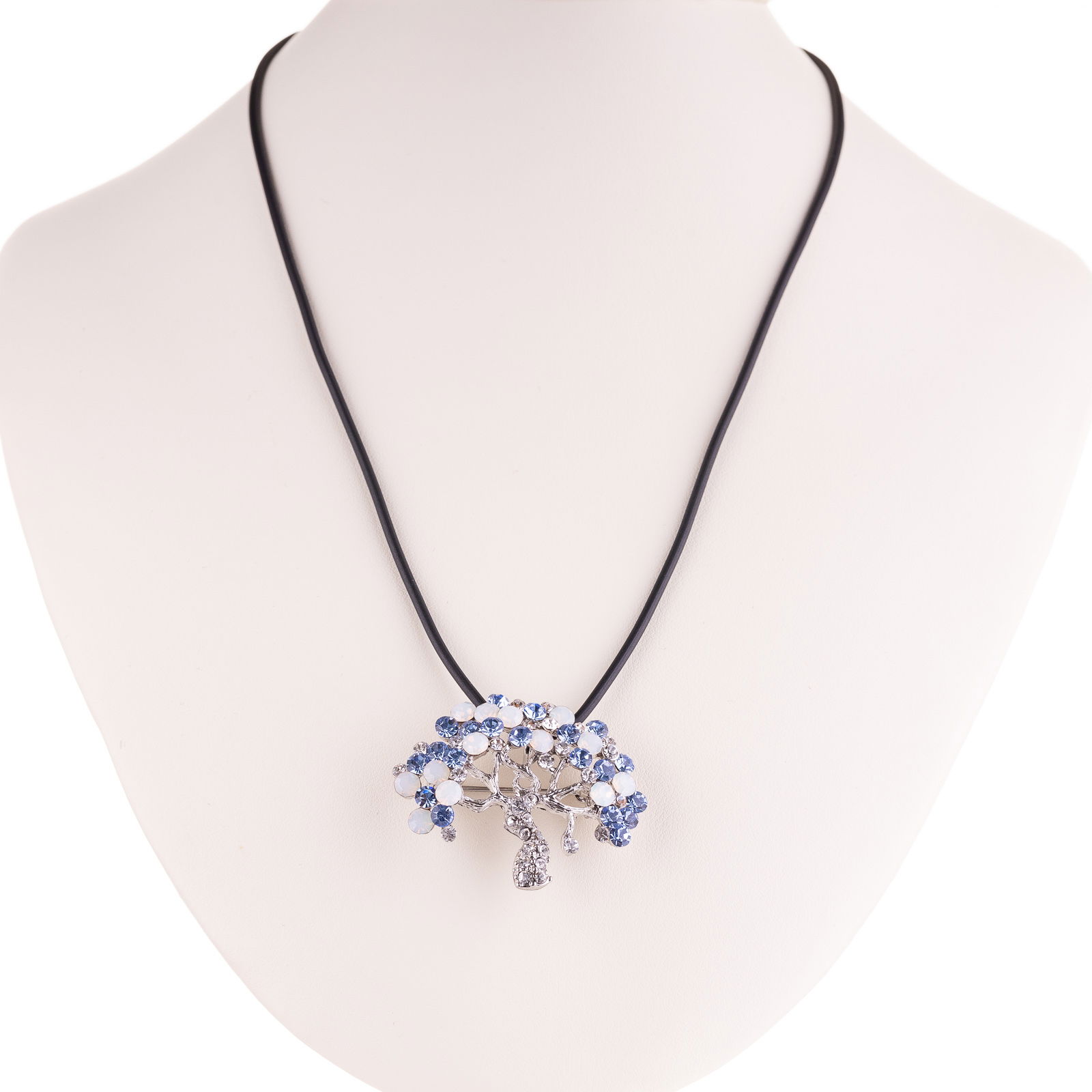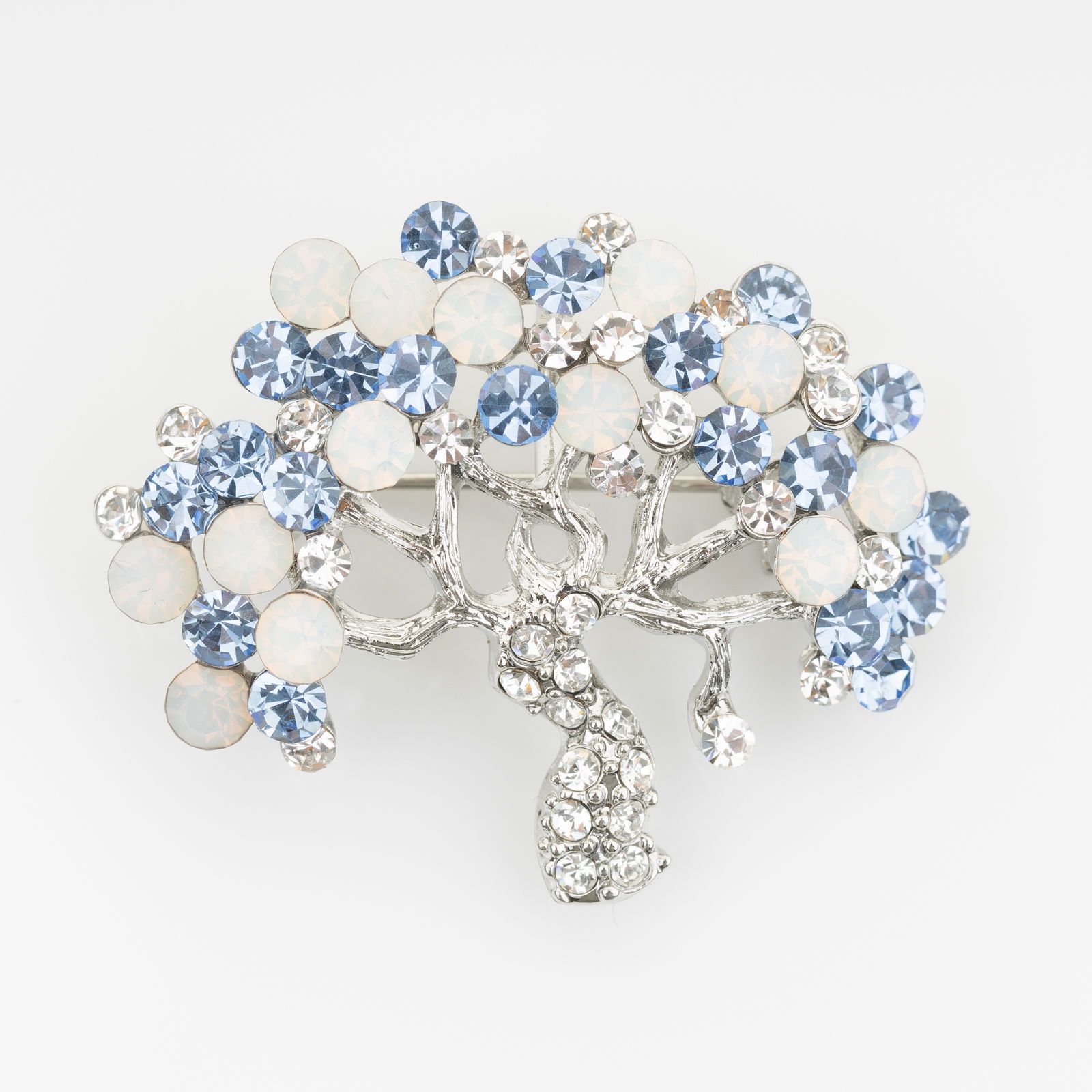 Shopika Brosa pandant metalica Pomul Vietii argintiu cu pietricele in nuante alb-bleu
