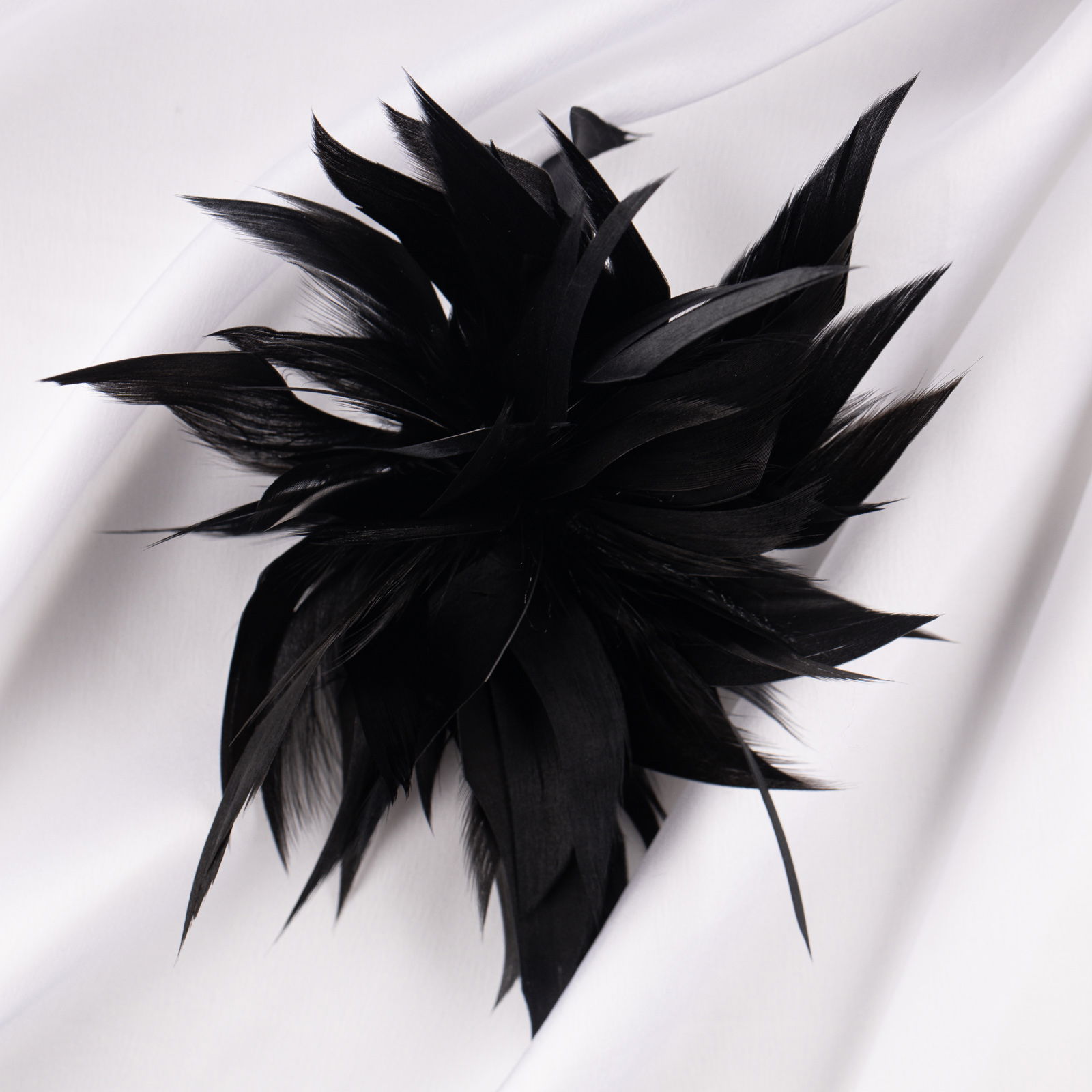 Shopika Brosa puf pene neagra cu diametru de 15 cm, cu clips pentru par