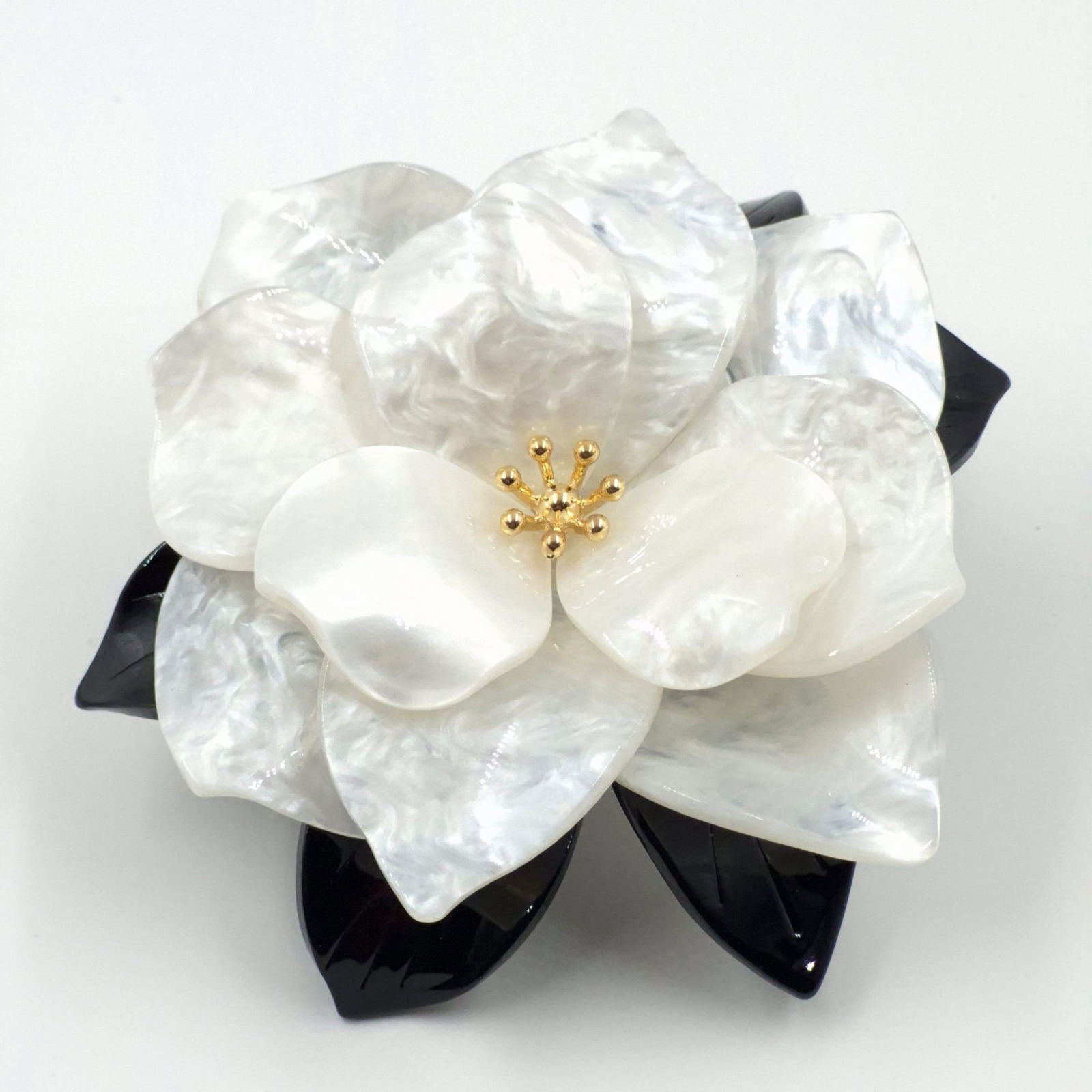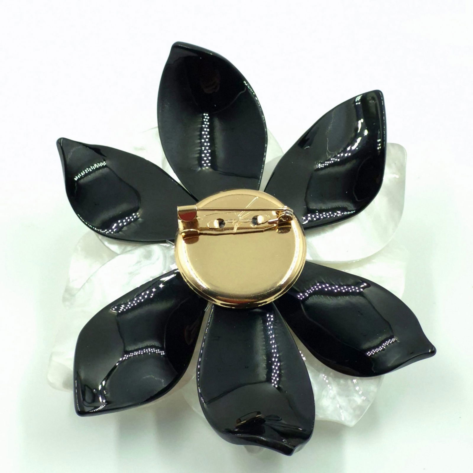 Shopika Brosa statement in forma de floare, din rasina, cu efect de sidef, alb-negru