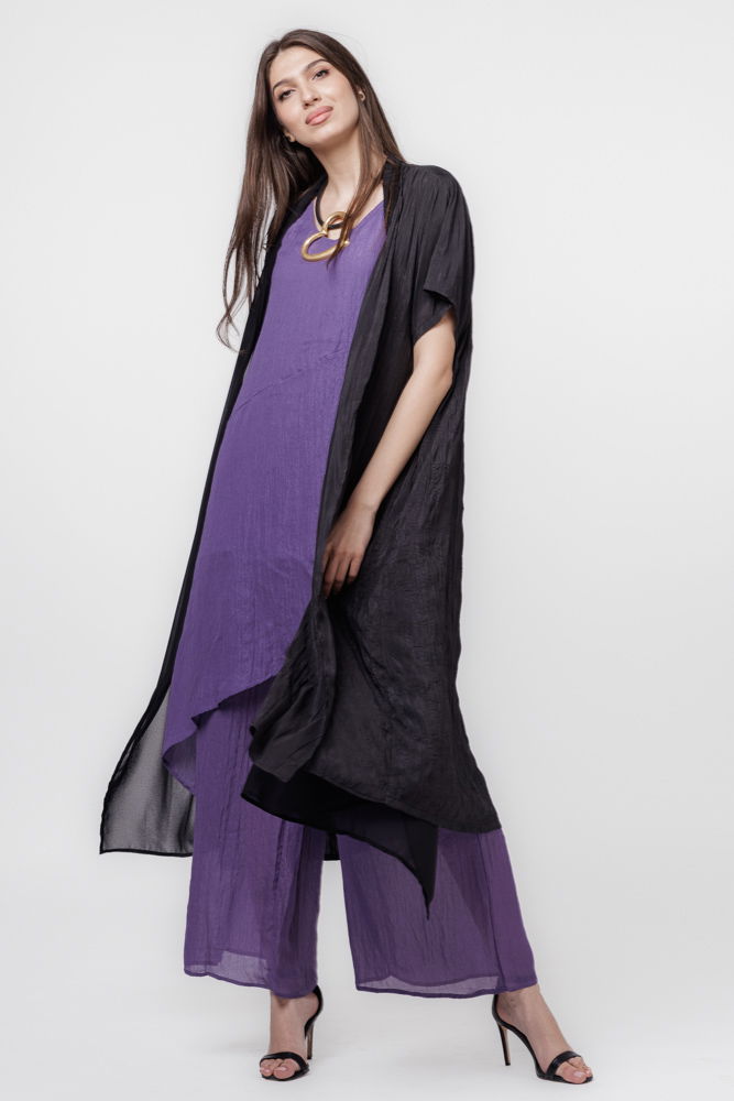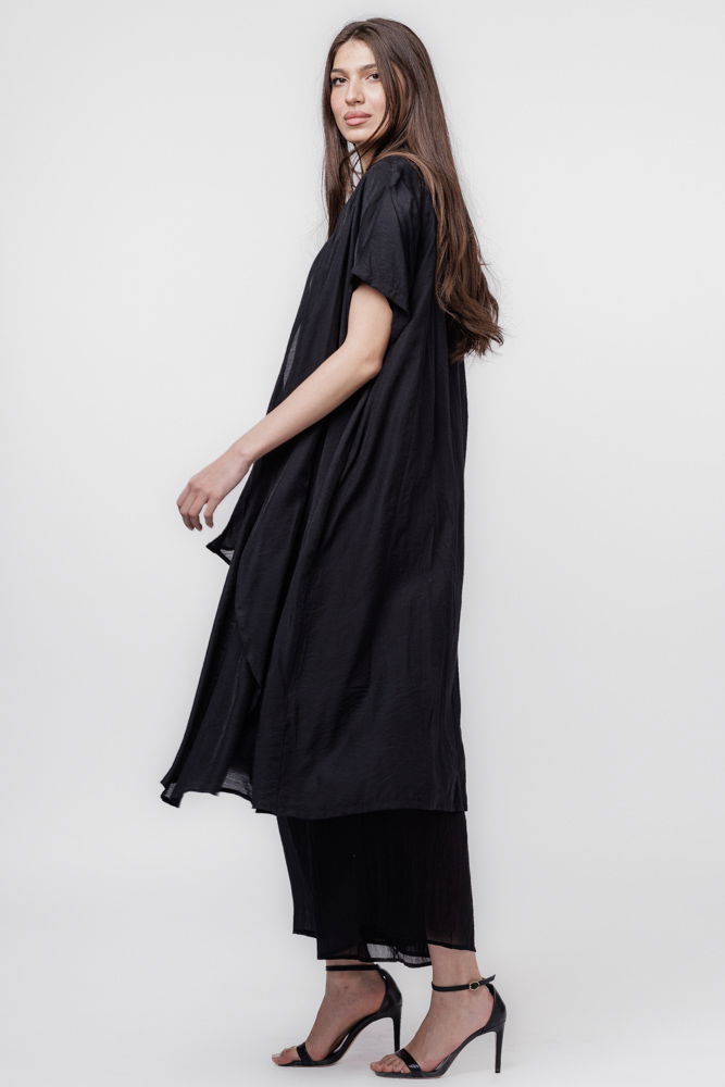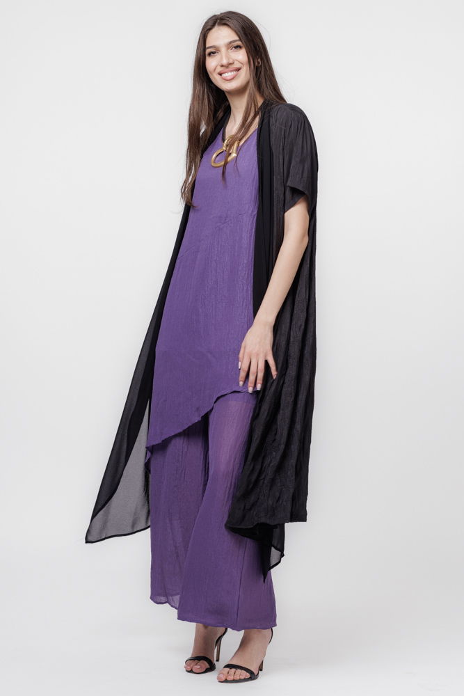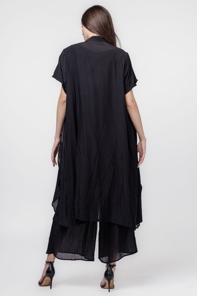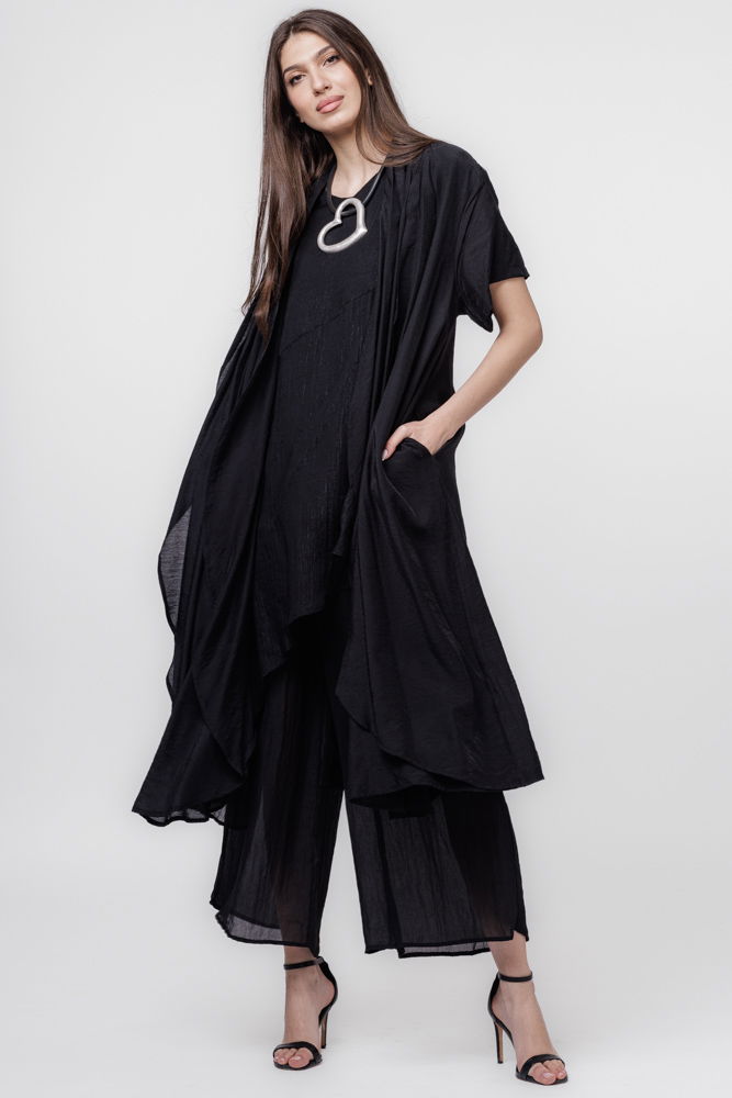 Blazer elegant, usor creponat, cu rever dublat cu voal negru