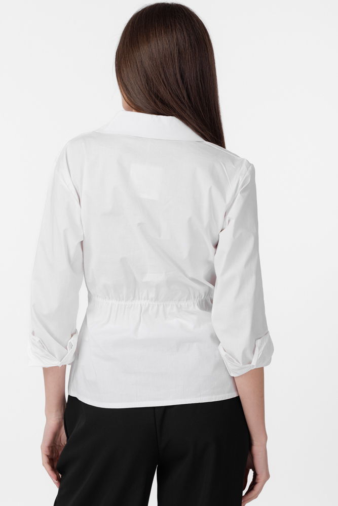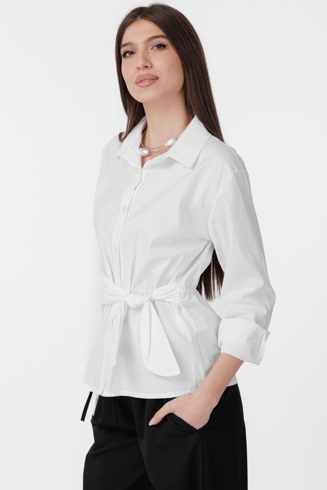 Shopika Camasa clasica, din poplin de bumbac, cu nod pe talie, alba