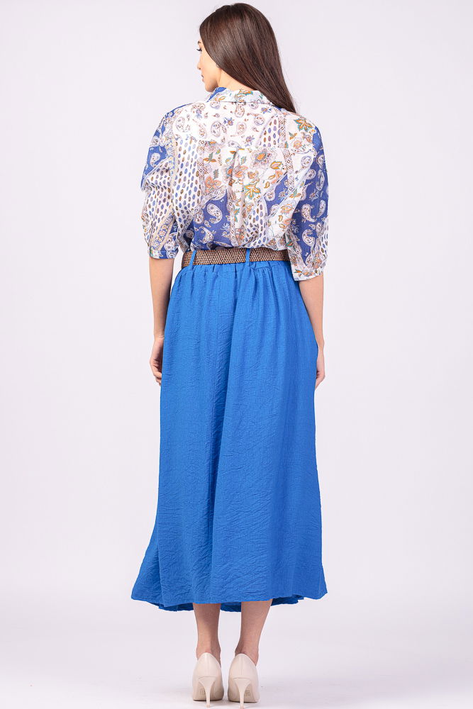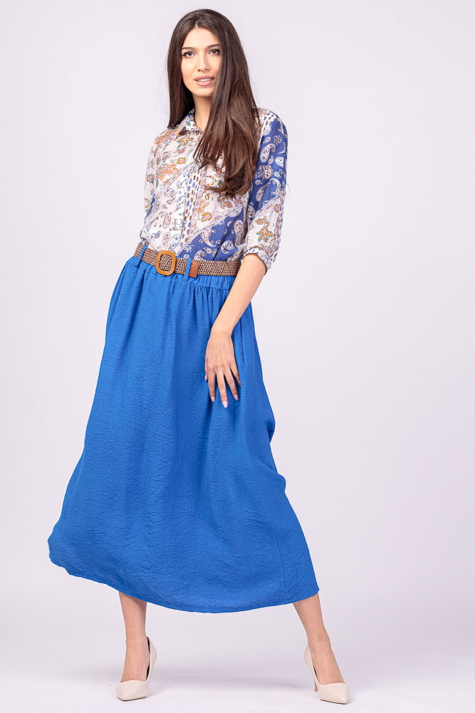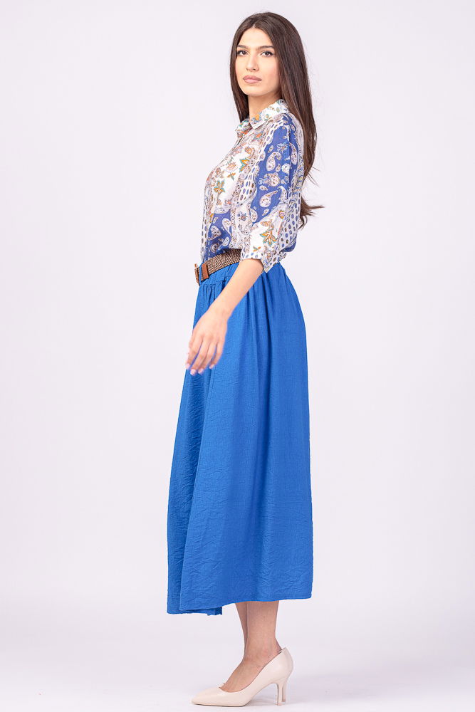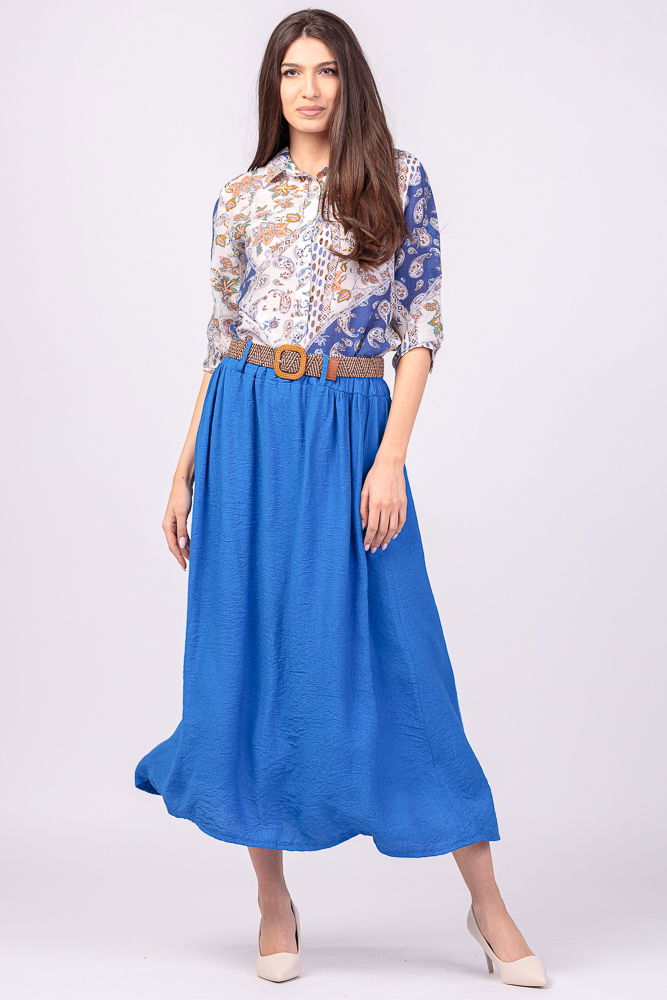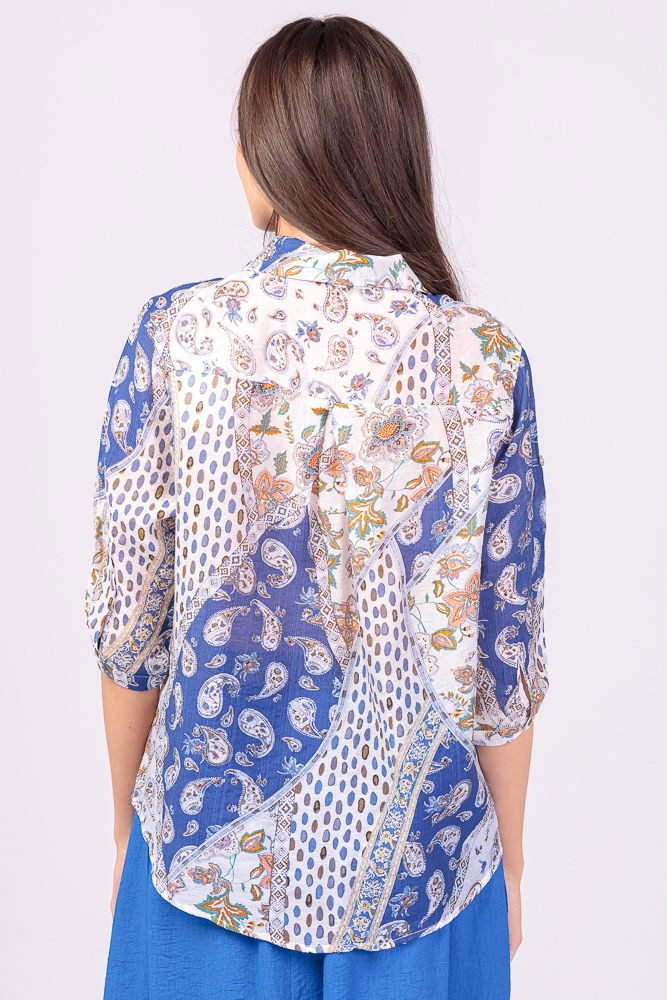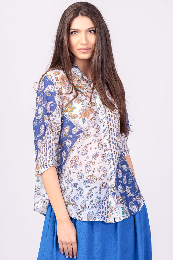Shopika Camasa subtire, cu guler clasic si imprimeu paisley albastru
