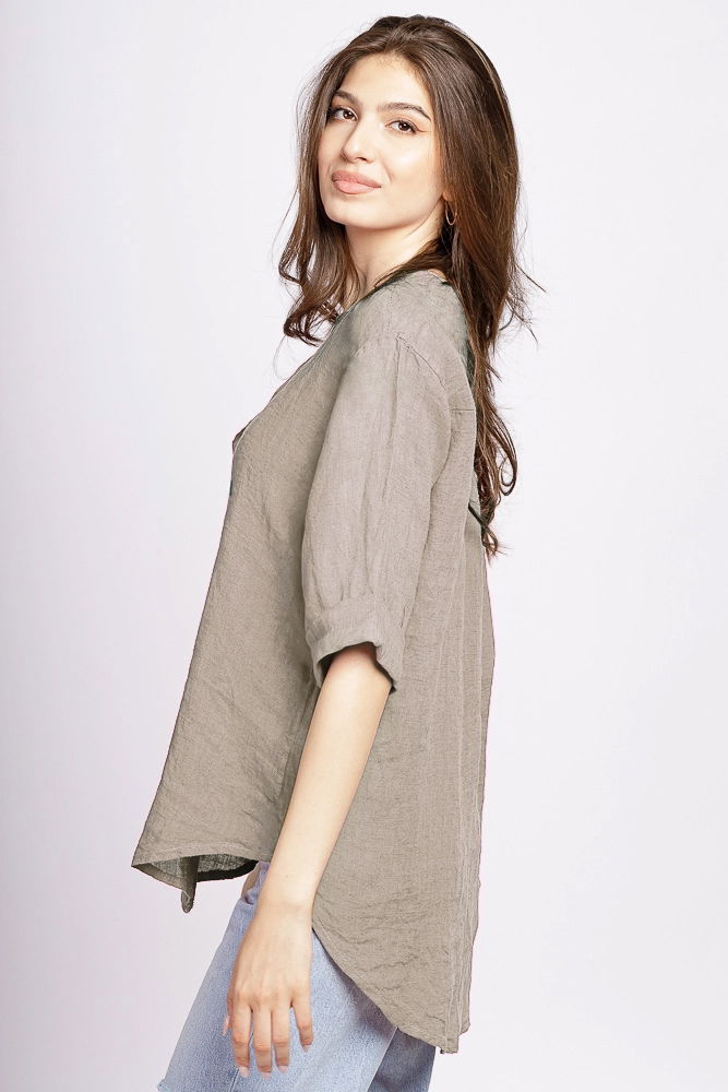 Camasa este confectionata din in si este perfecta pentru o tinuta casual de efect.