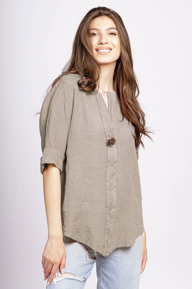 Shopika Camasa bej inchis din in cu nasture metalic decorativ
