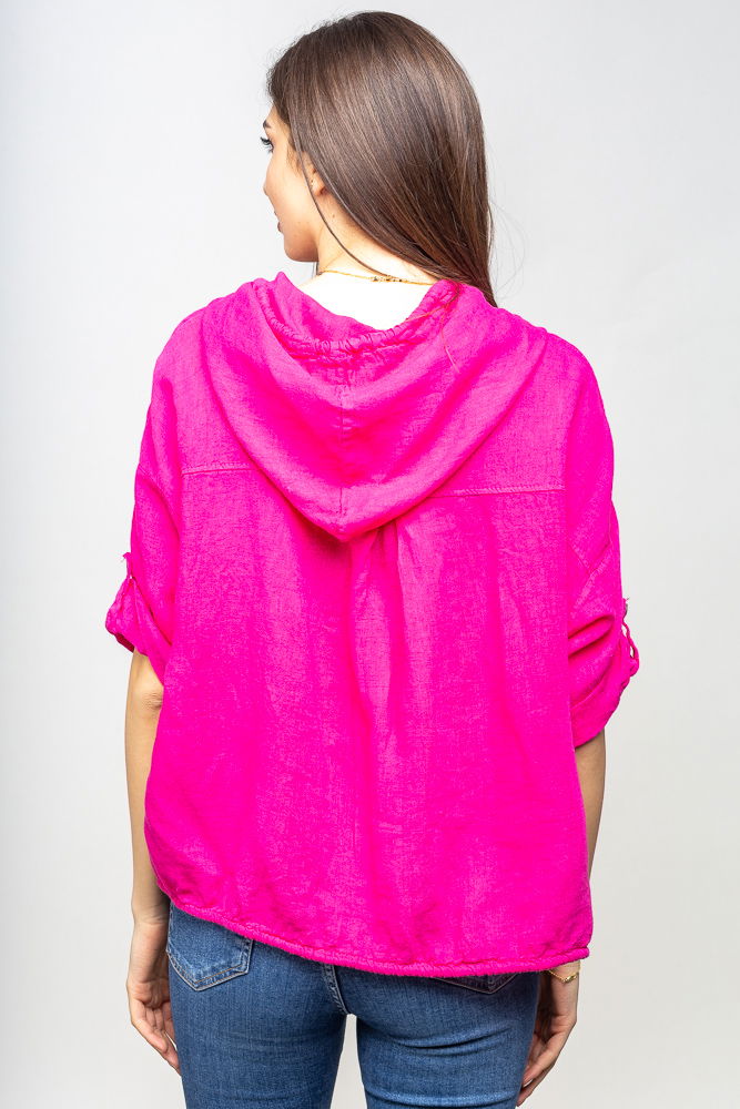 Shopika Hanorac fucsia din in cu fermoar metalic si gluga
