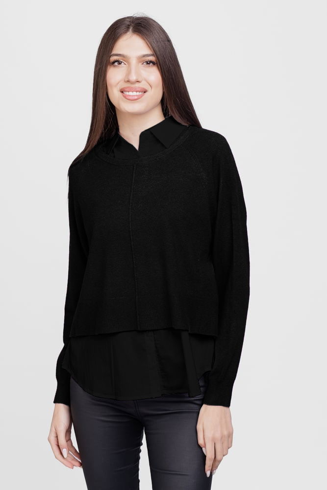 Bluza tip camasa doi in unu, cu angora si tricotajul negru