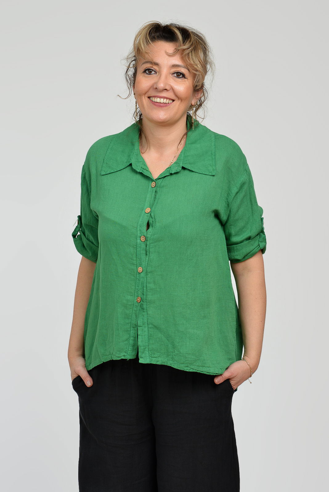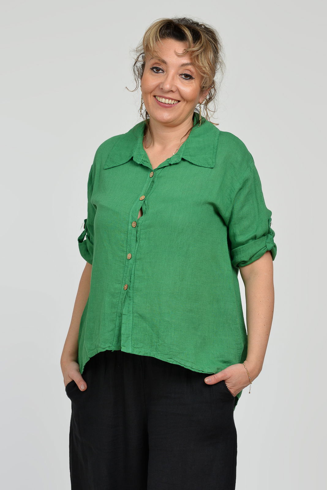 Cămașa din in combină eleganța clasică cu un design modern și jucăuș. Cu un croi mai scurt în față și o coadă de rândunică delicată în spate, acest model adaugă un aer rafinat și fluid ținutelor tale. Materialul ușor și respirabil al cămășii din in o face perfectă pentru zilele calde de vară, în timp ce detaliile de design pun în valoare silueta, oferind un aspect chic și în același timp confortabil. Se poate purta cu pantaloni lejeri sau fuste, fiind ideală pentru un look casual dar și pentru un stil boho mai sofisticat.