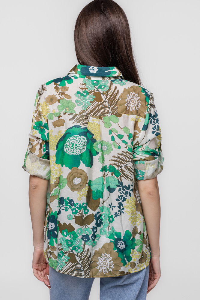 Shopika Camasa subtire din vascoza, cu guler clasic si imprimeu floral in nuante de verde