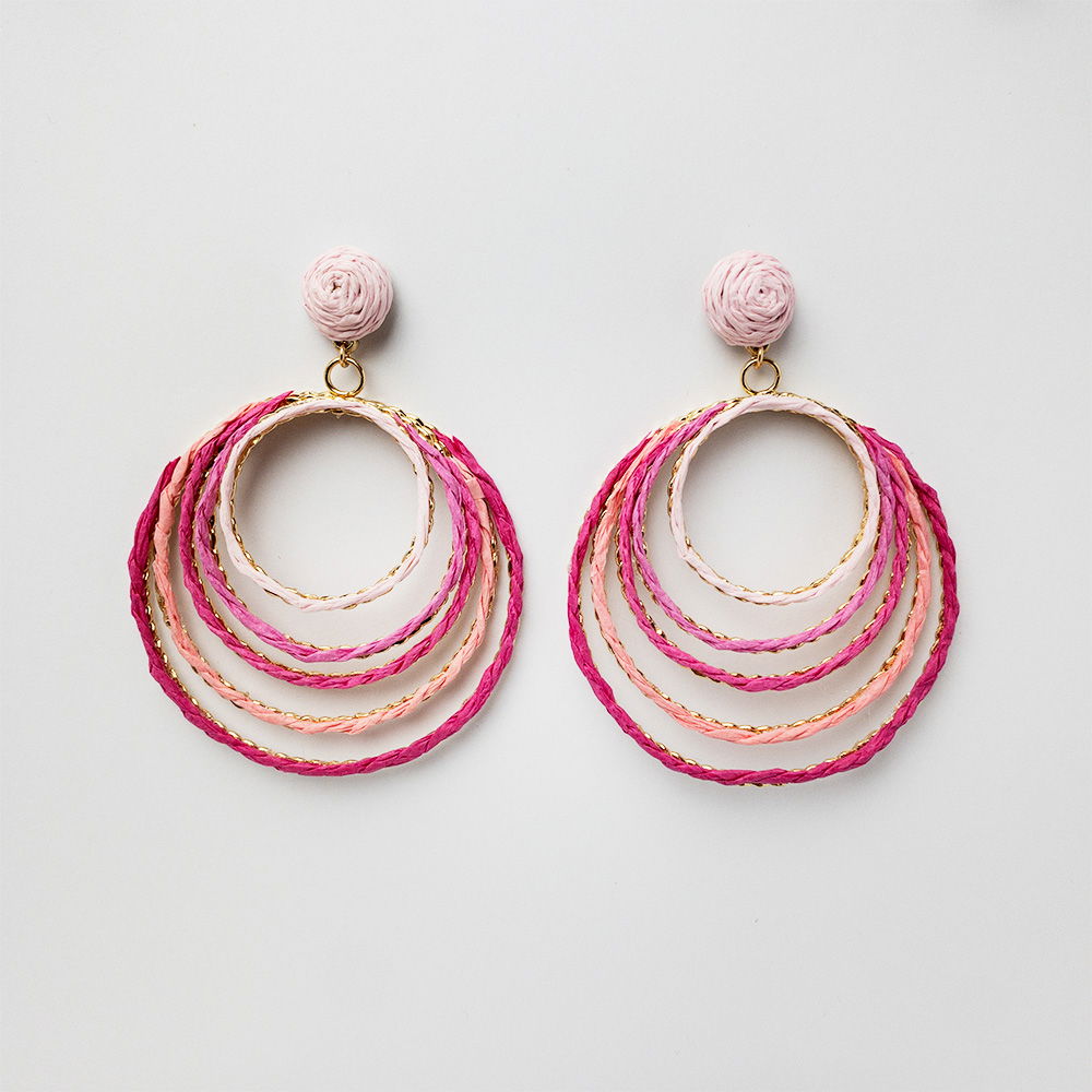 Shopika Cercei metalici aurii cu cinci cercuri, in nuante de roz si fucsia