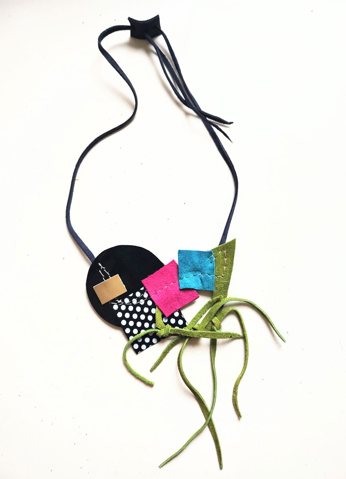 Shopika Colier statement din piele naturala cu insertii , unicat