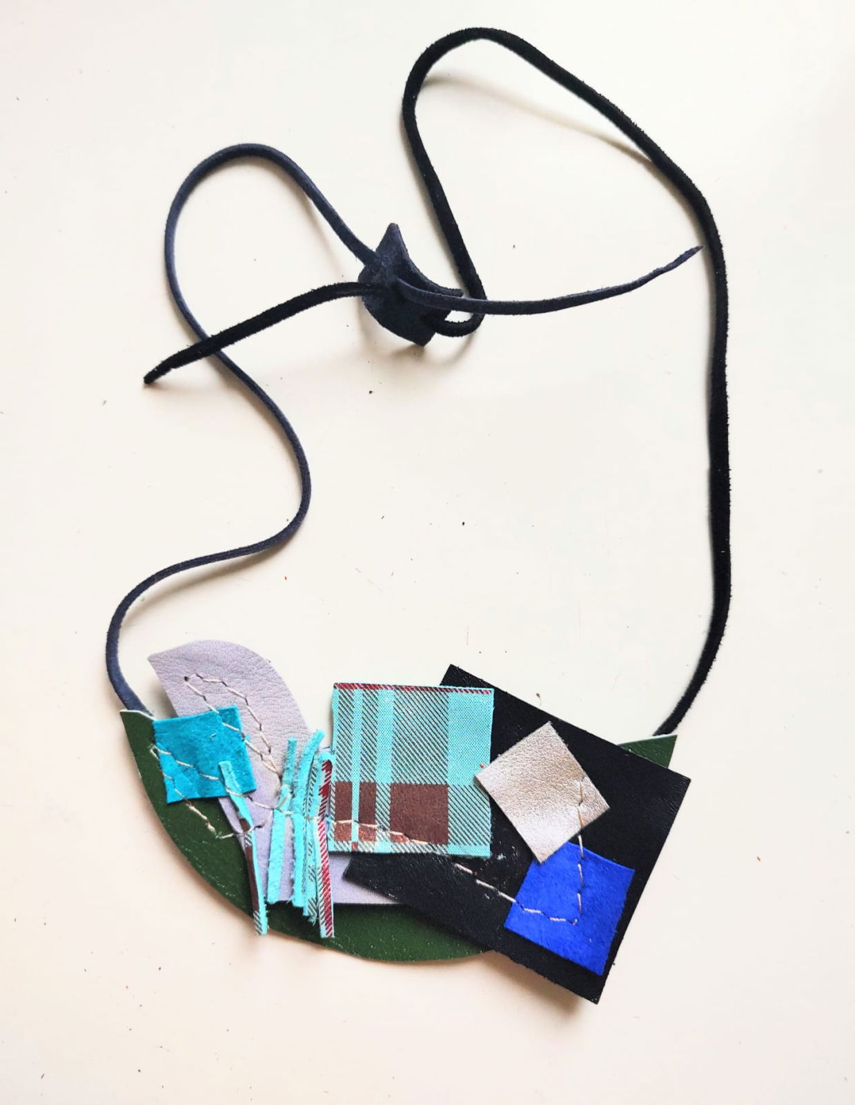 Shopika Colier statement din piele naturala ,nuante smarald,bleu,albastru