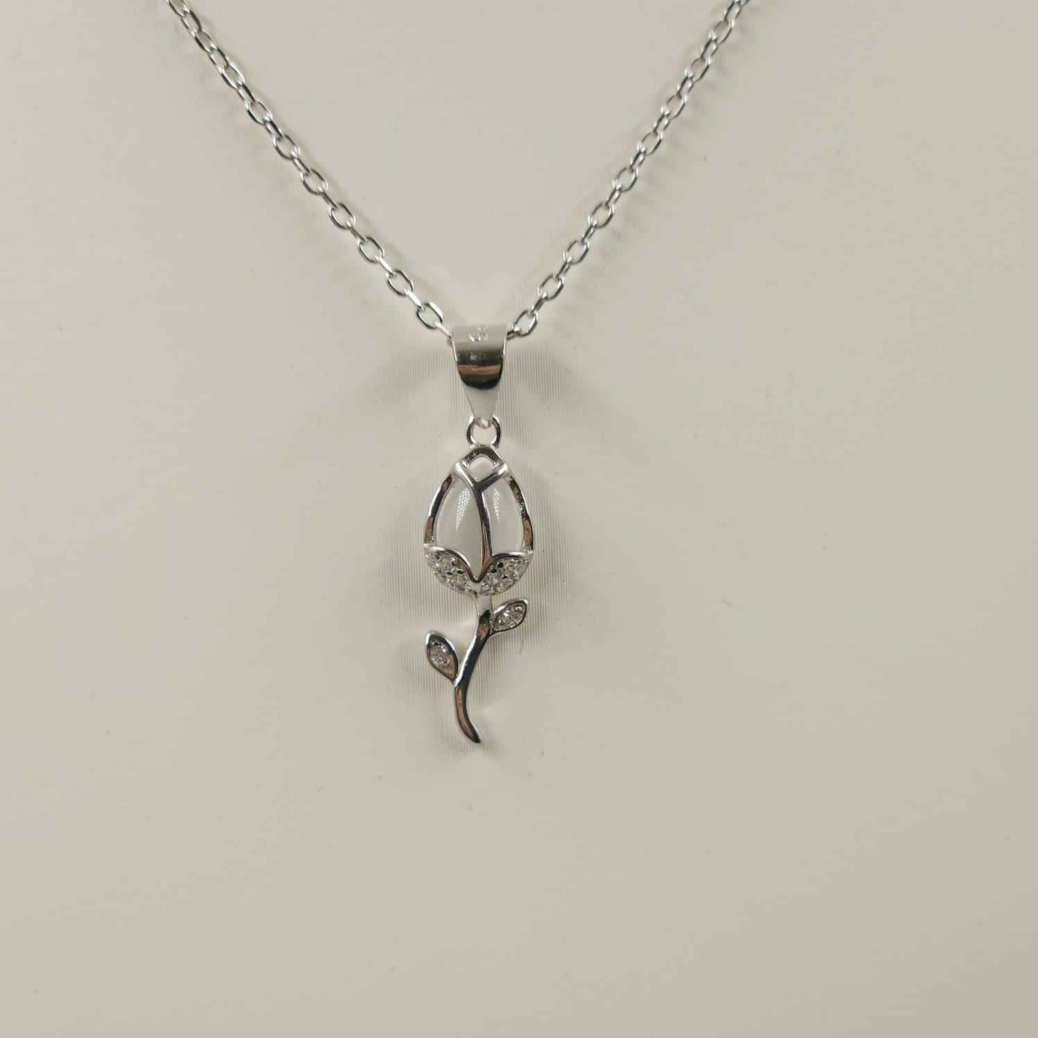 Shopika Set colier cu lant din argint 925 si pandant lalea cu sidef alb si pietre fine din cubic zirconia
