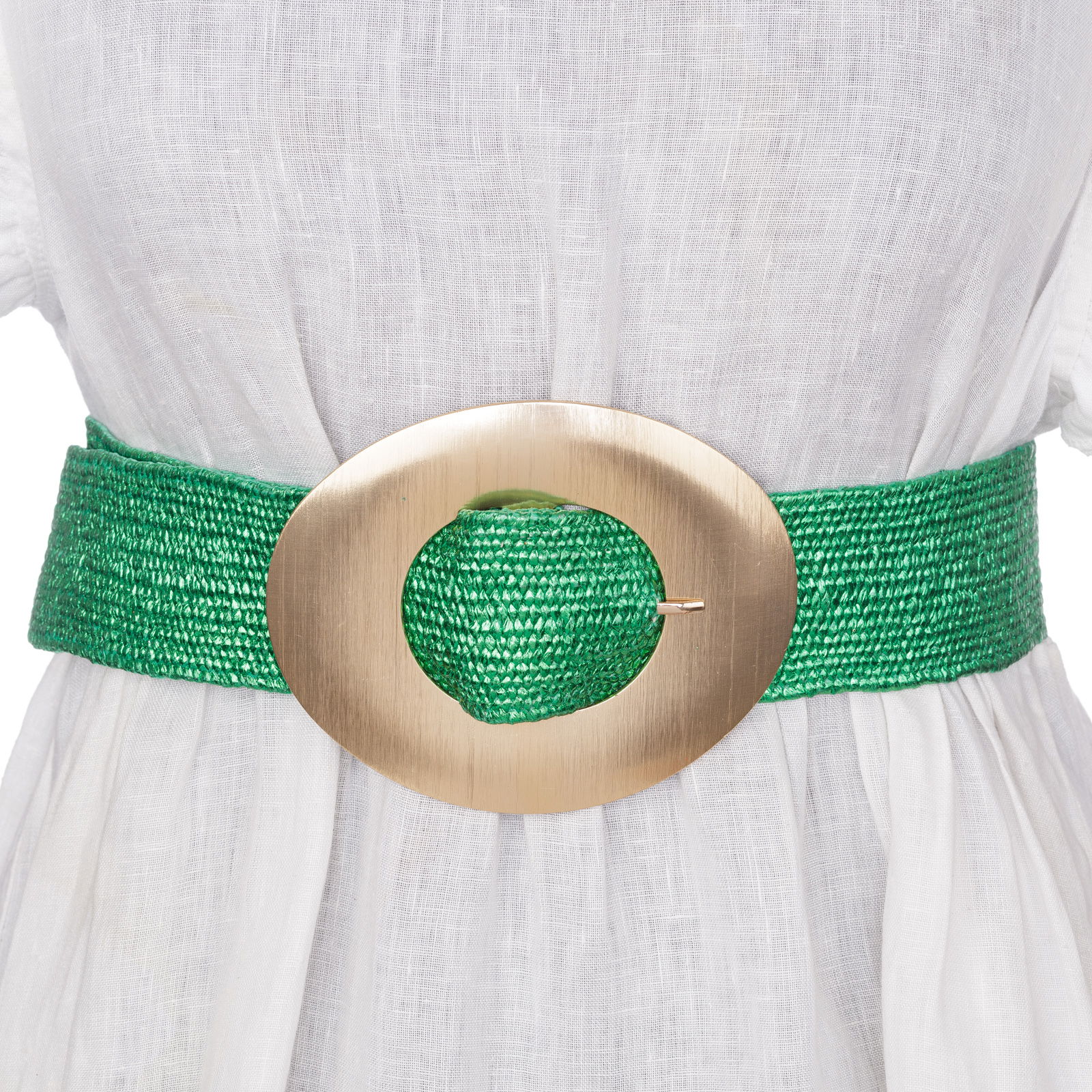 Shopika Curea elastica verde din impletitura cu latime de 5 cm, catarama aurie