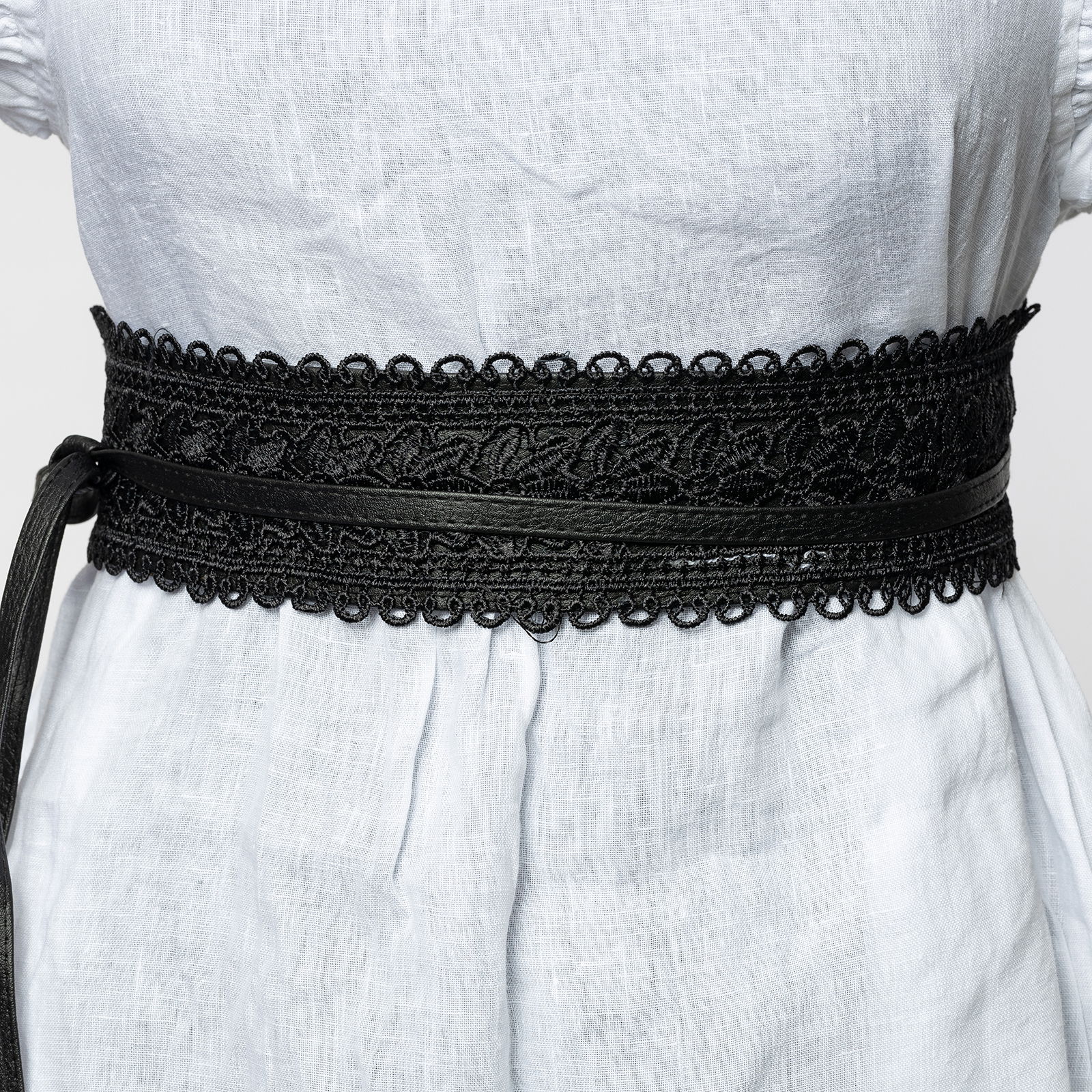 Curea din piele ecologica care se petrece in jurul taliei si evidentiaza silueta feminina..