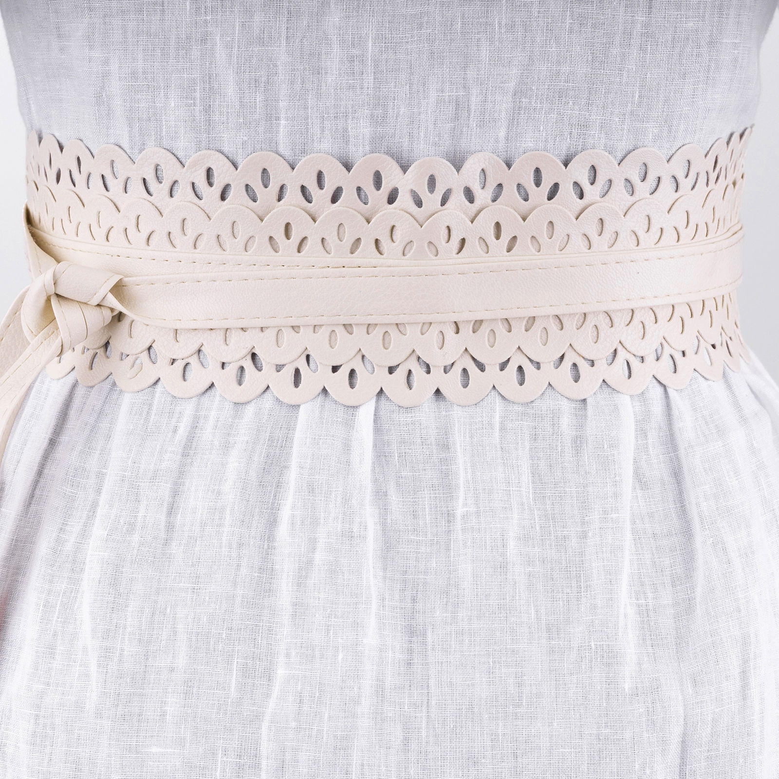 Curea din piele ecologica care se petrece in jurul taliei si evidentiaza silueta feminina..